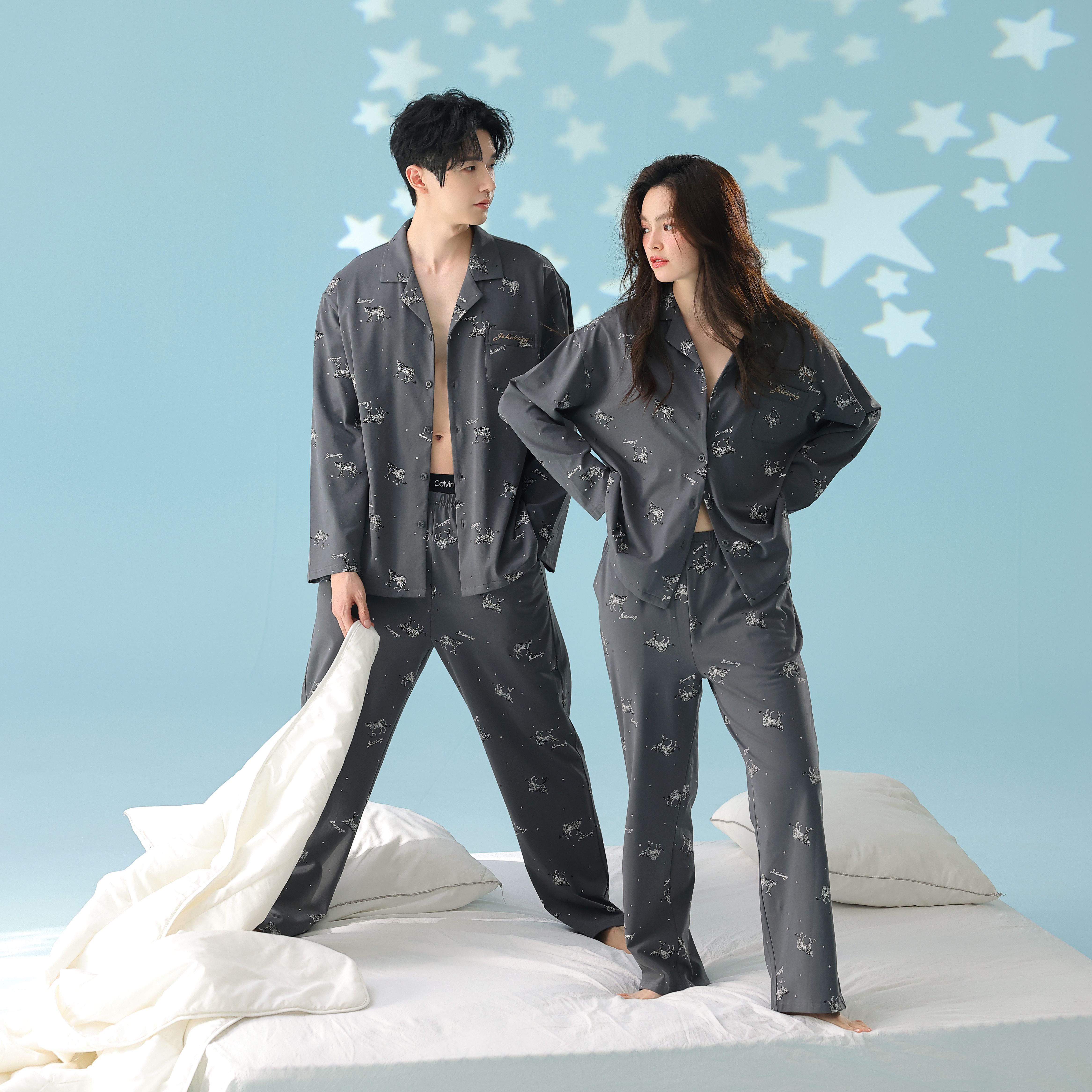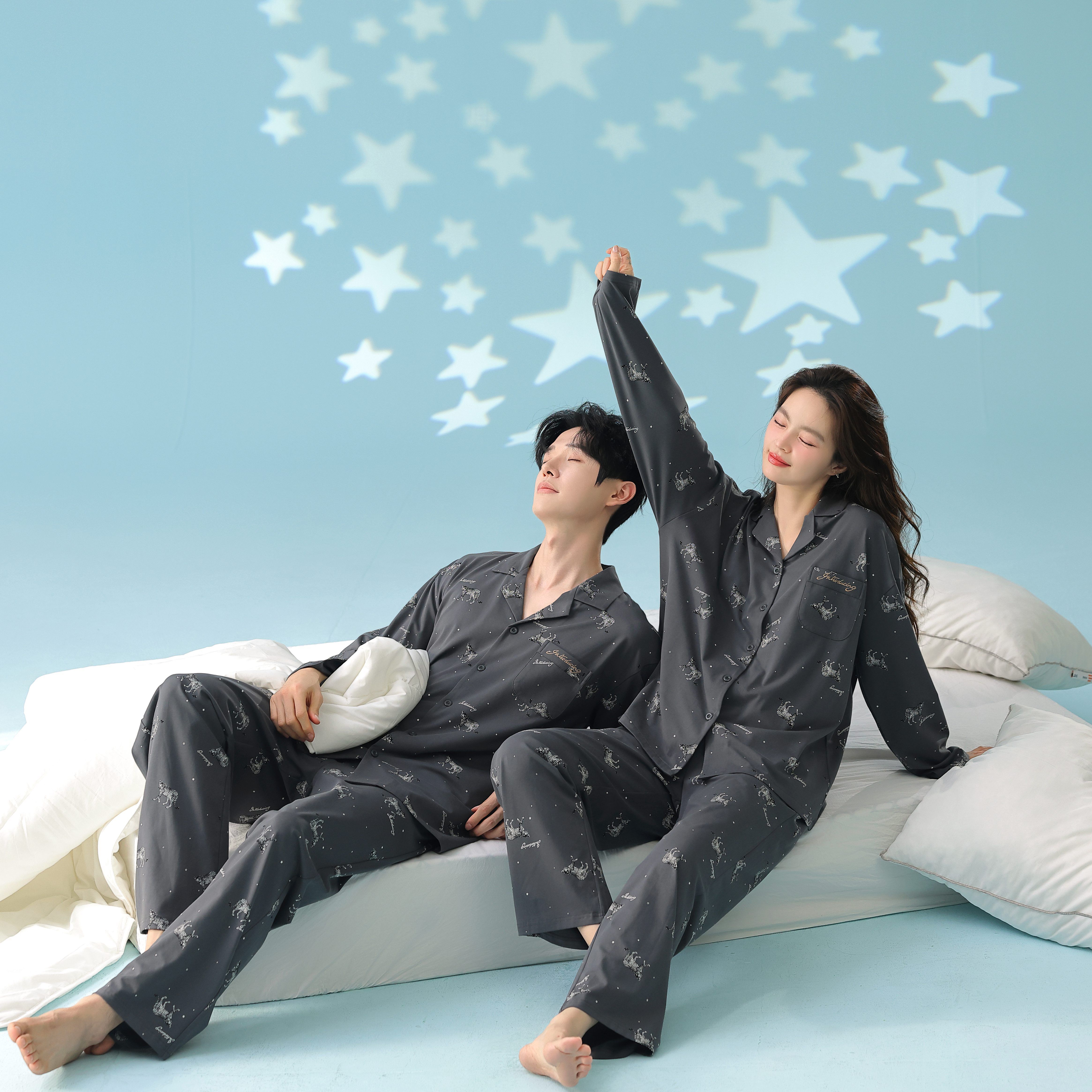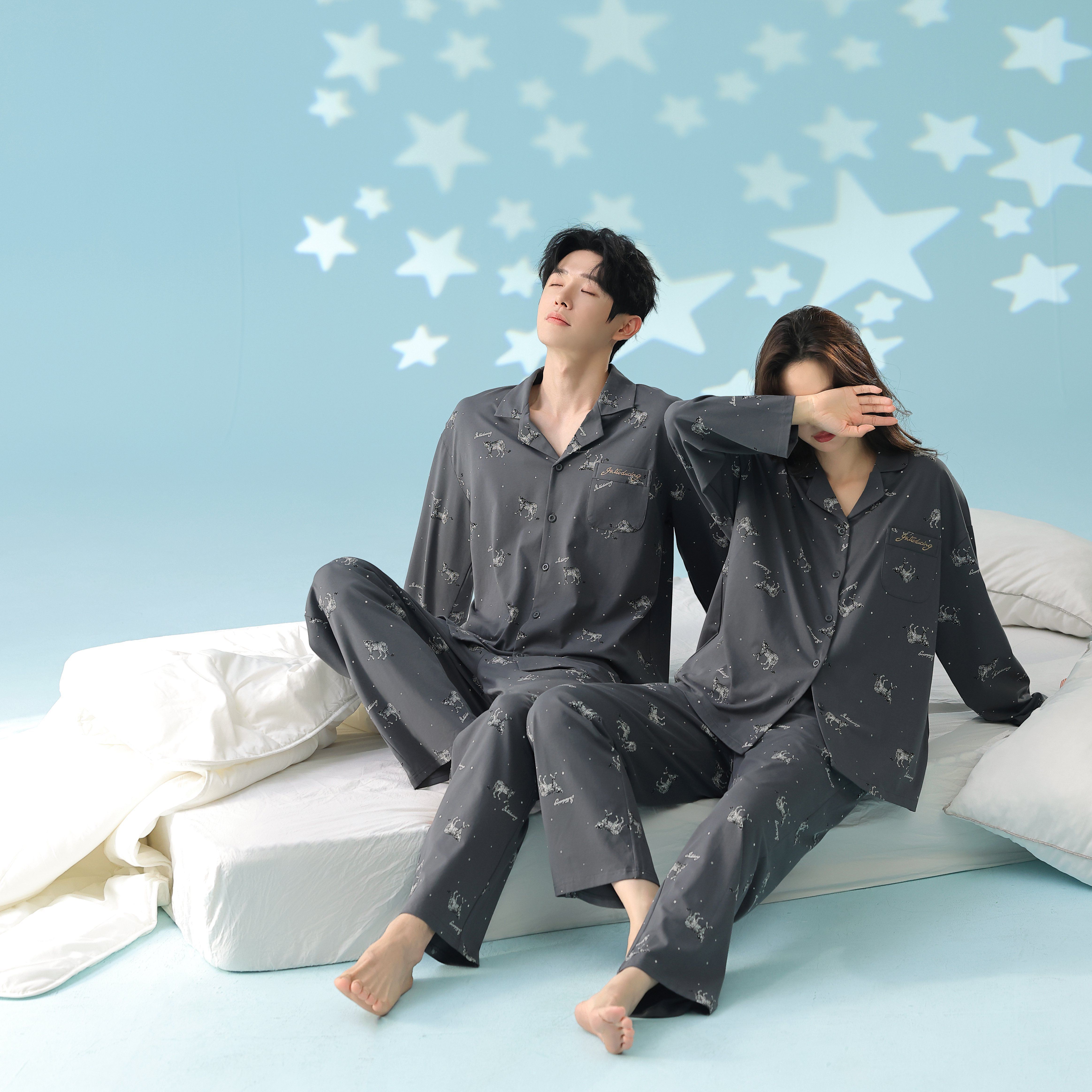 当前位置: 91家纺网 > 商品网购 > 居家日用 > 睡衣/家居服套装 > 妍景家居生活馆 2026新款新疆棉情侣款翻领豹子款套装家居服 组合图仅供参考不可下单