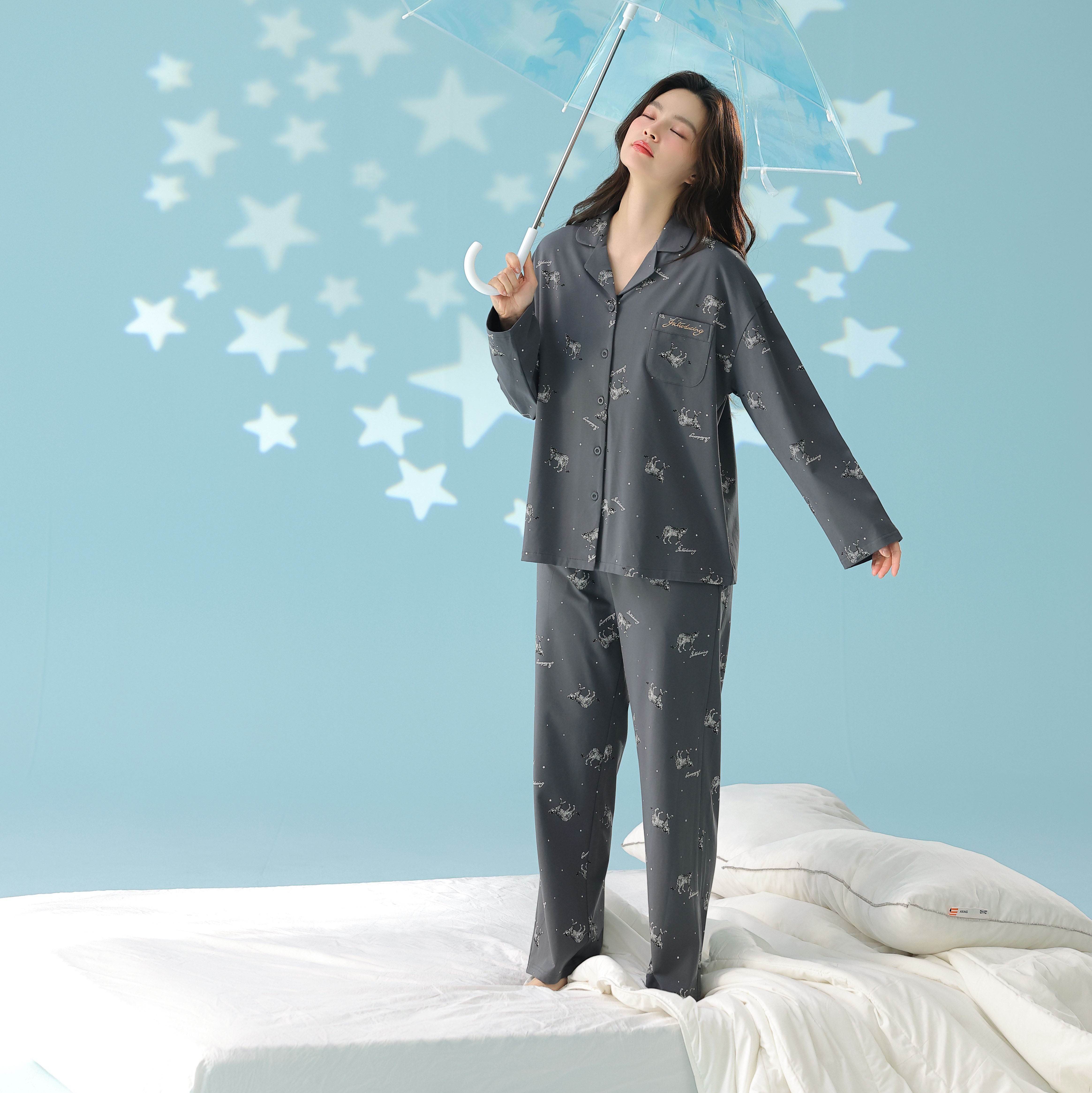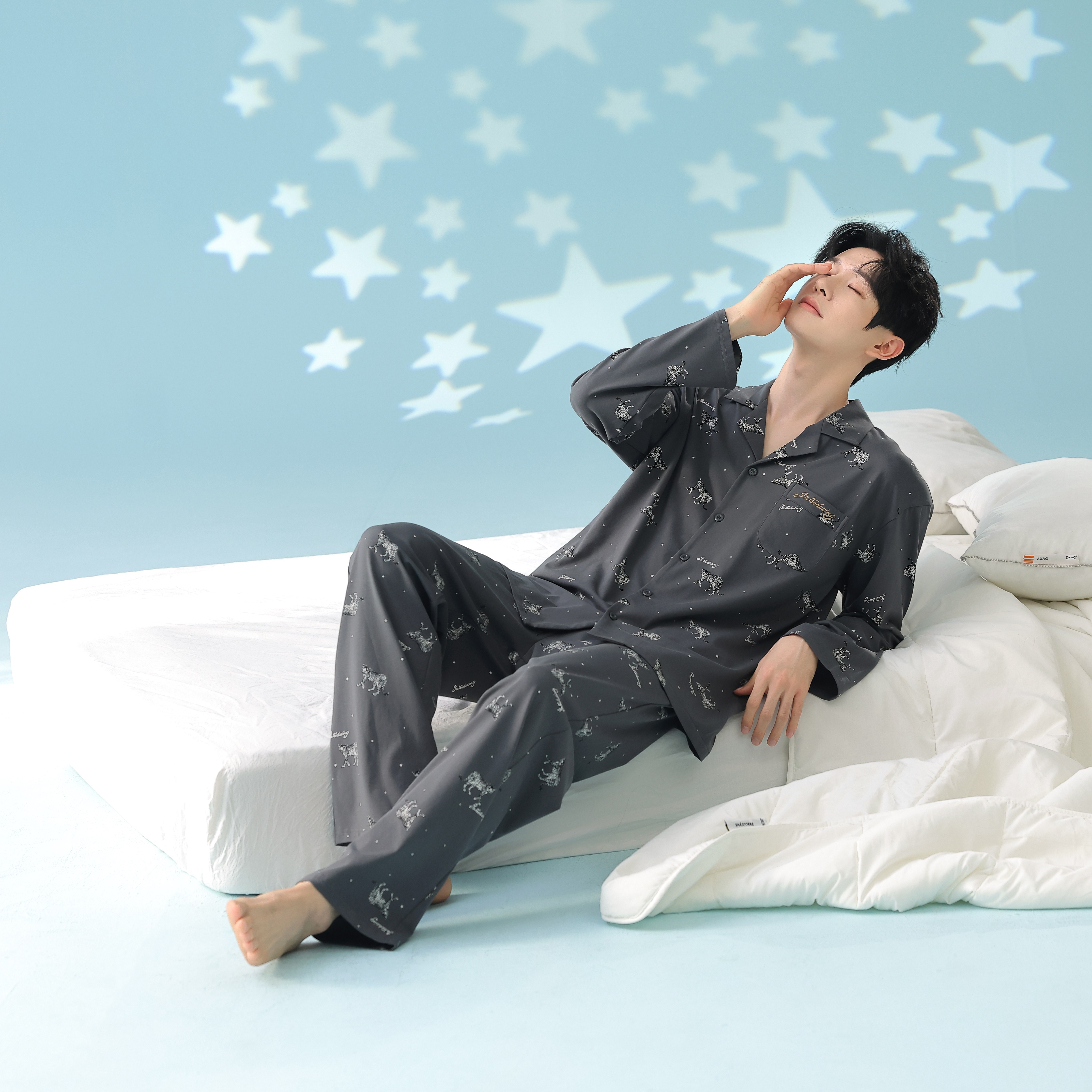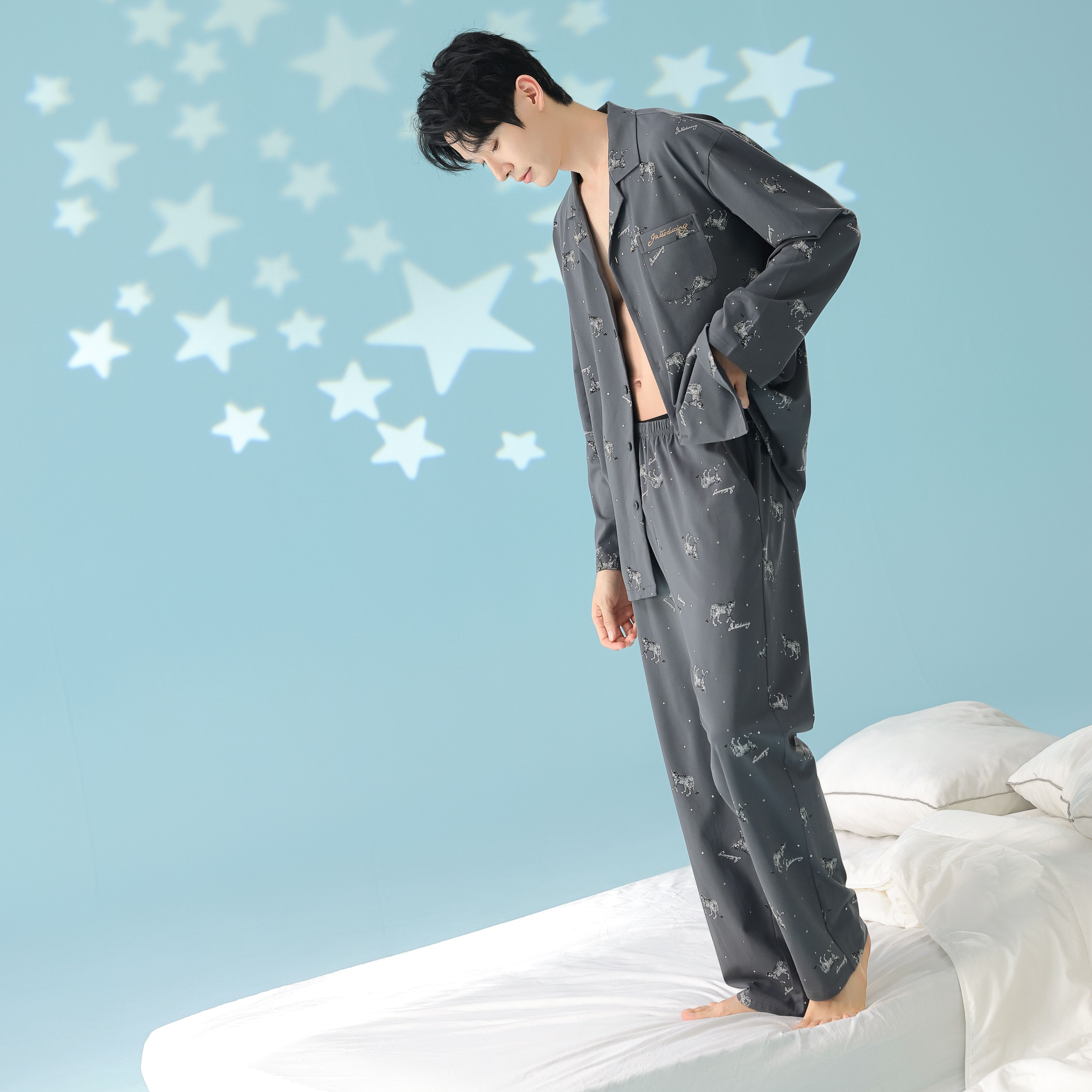 当前位置: 91家纺网 > 商品网购 > 居家日用 > 睡衣/家居服套装 > 妍景家居生活馆 2026新款新疆棉情侣款翻领豹子款套装家居服 组合图仅供参考不可下单