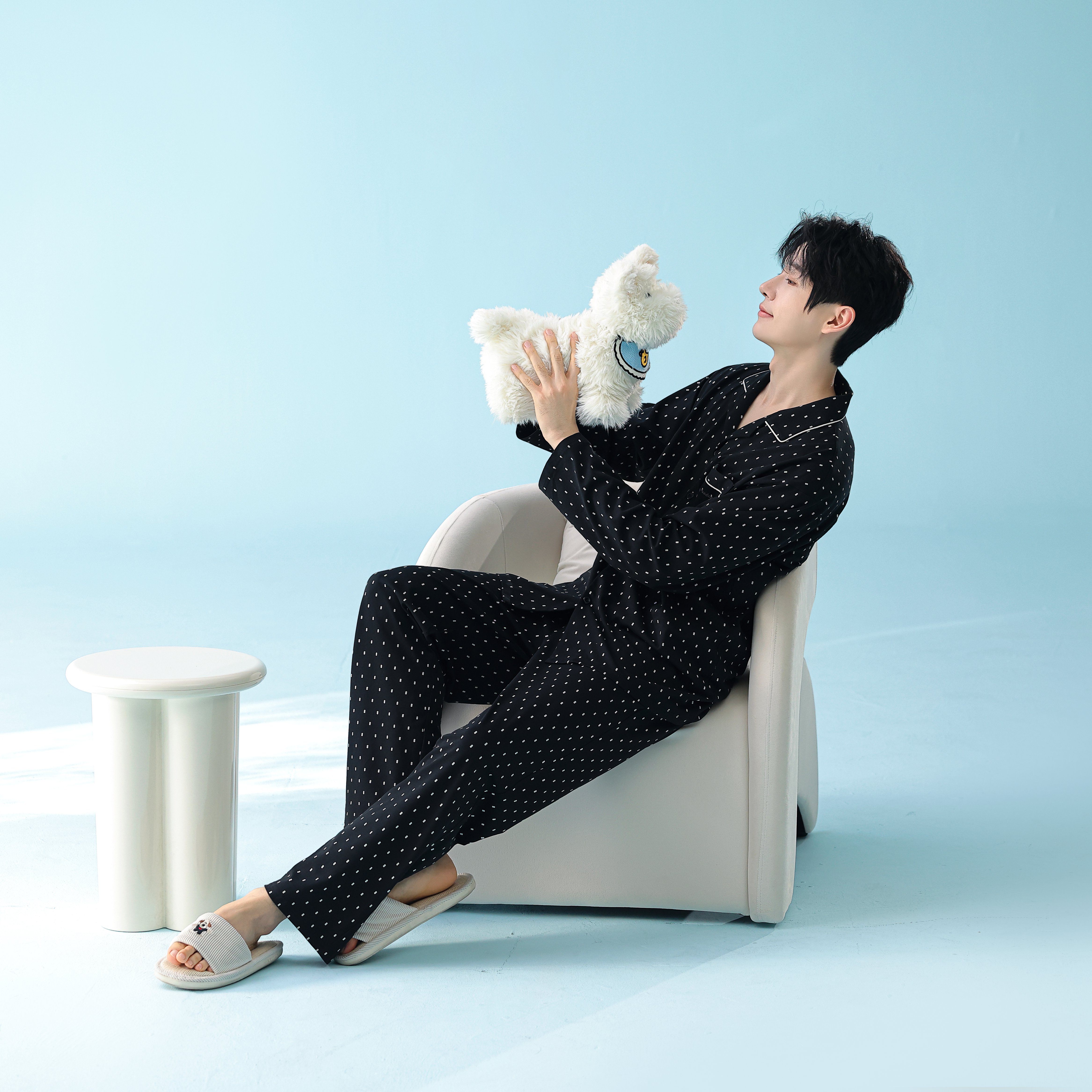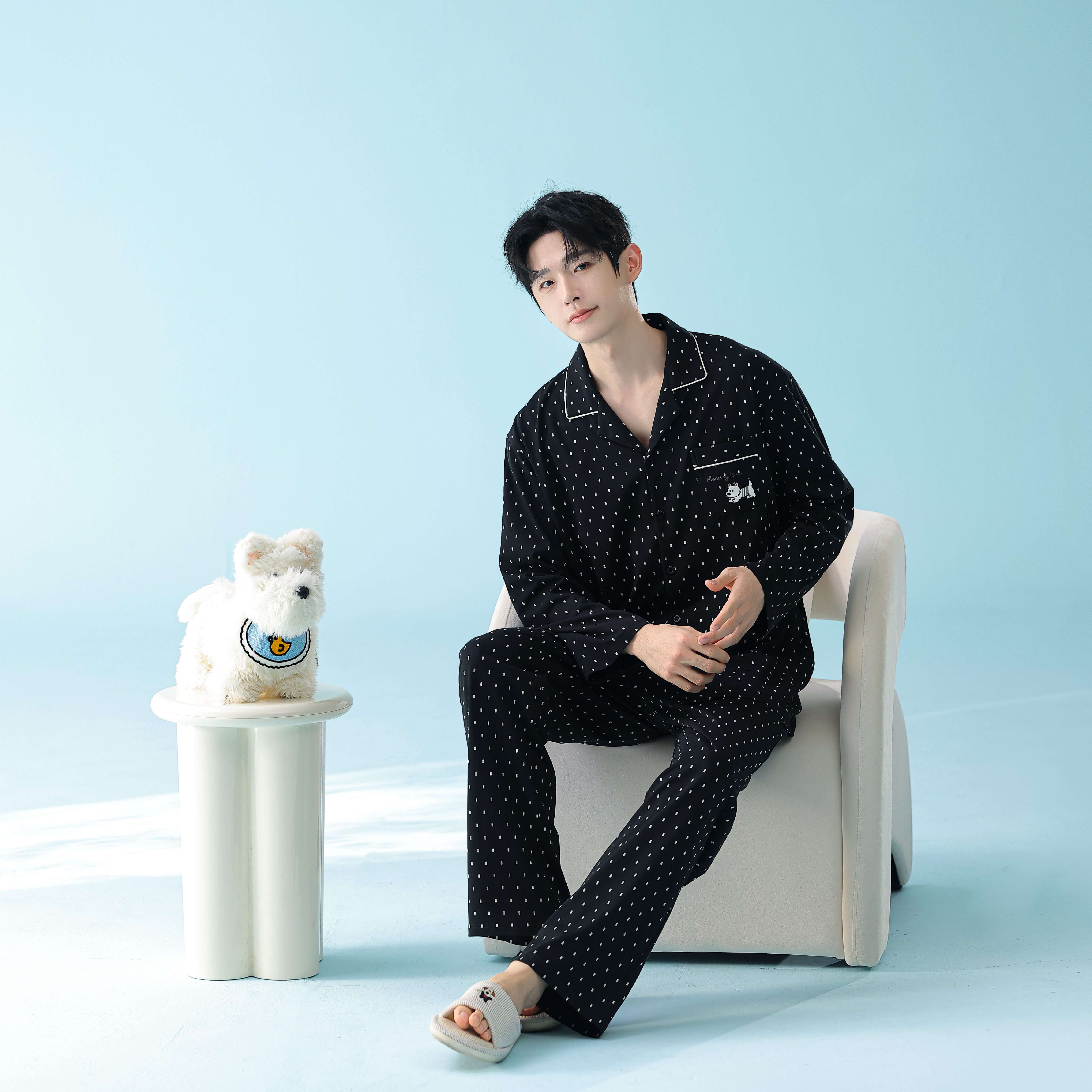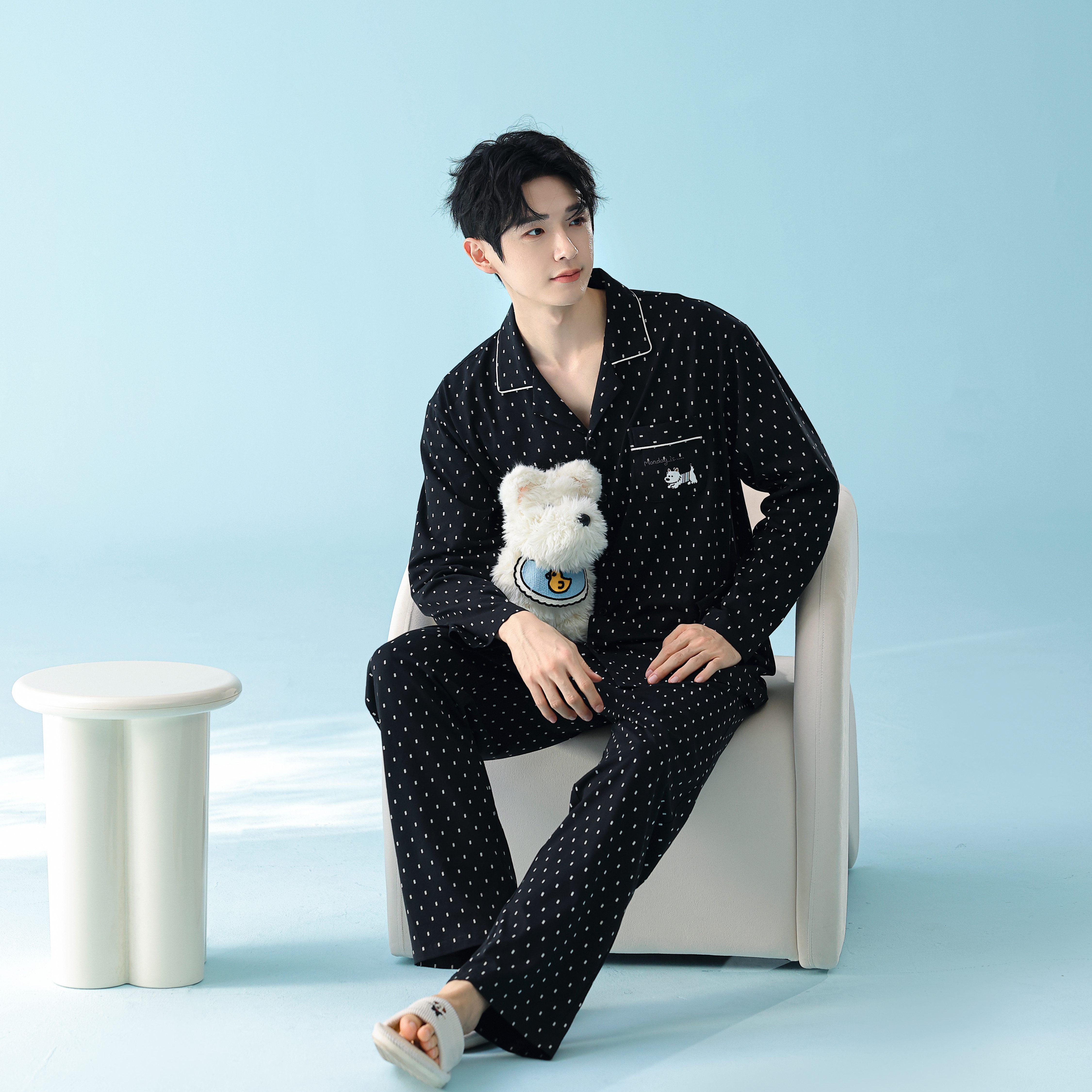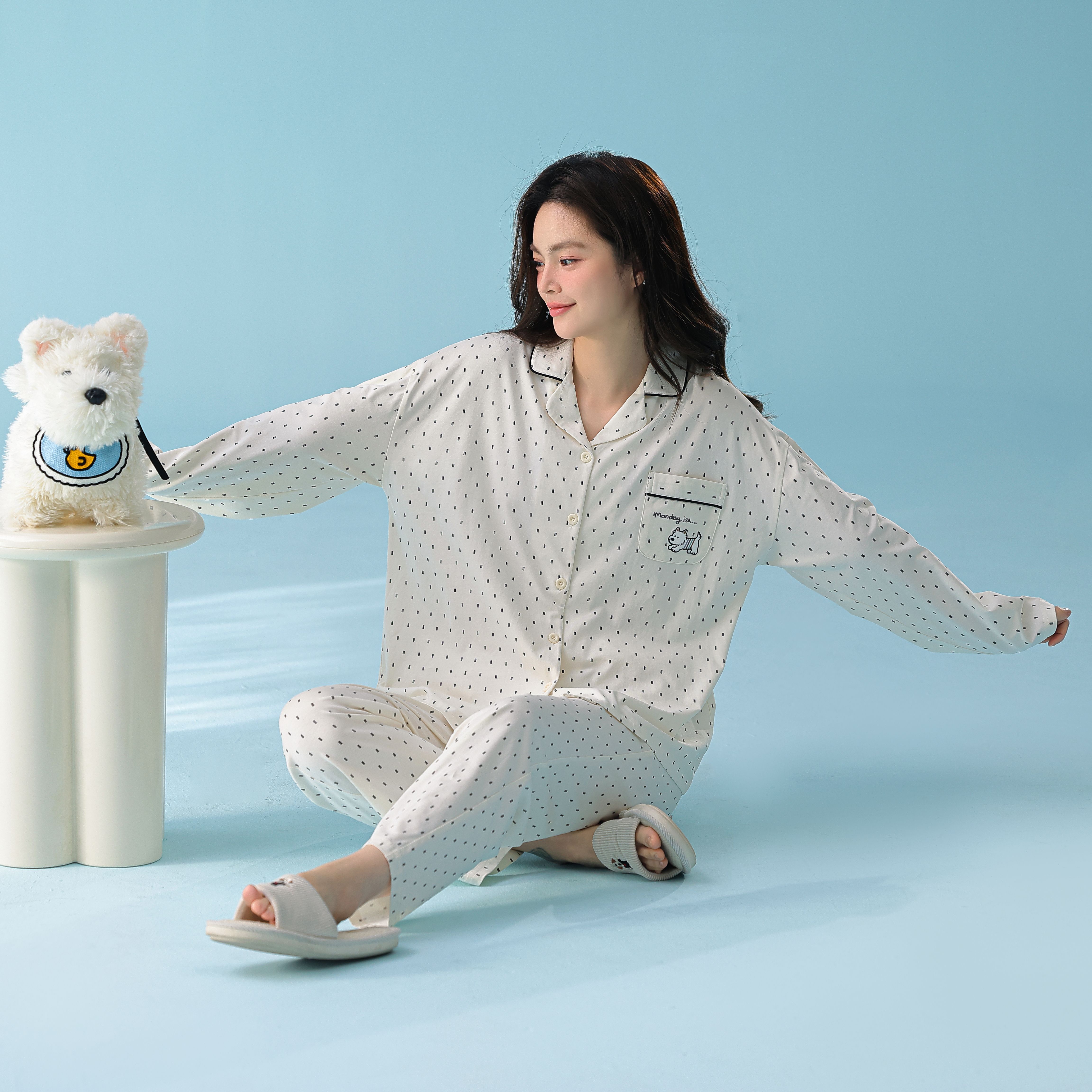 当前位置: 91家纺网 > 商品网购 > 居家日用 > 睡衣/家居服套装 > 妍景家居生活馆 2026新款新疆棉情侣款翻领黑白波点家居服 女款