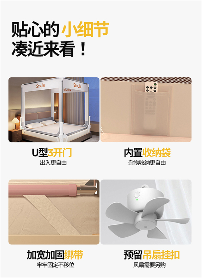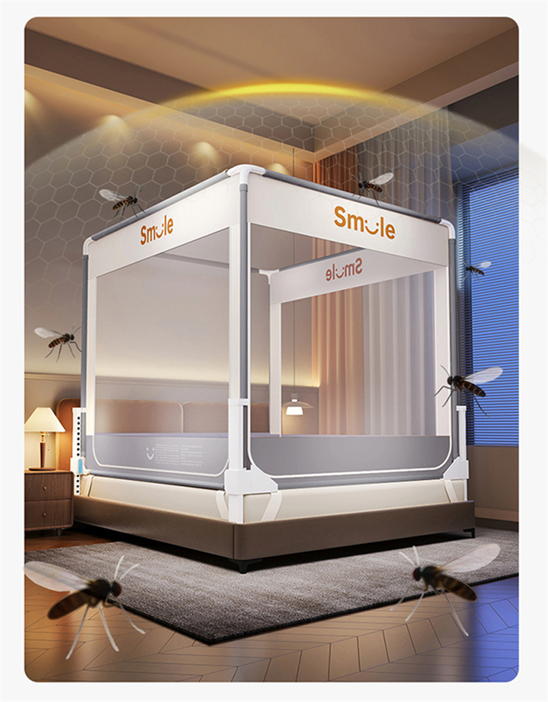 当前位置: 91家纺网 > 商品网购 > 床上用品 > 蚊帐 > 坐床式蚊帐 > 佳梦家纺 2026春夏新款护栏级防摔坐床蚊帐smile系列 smile灰-三门床笠款