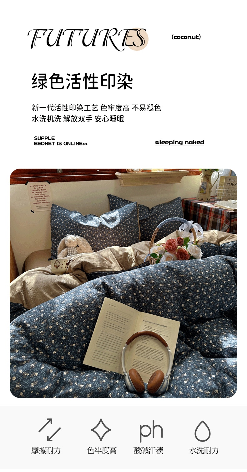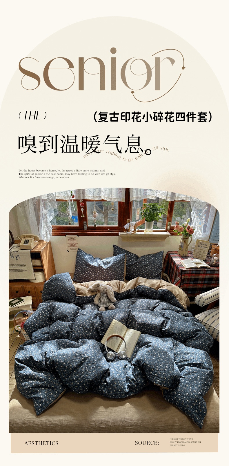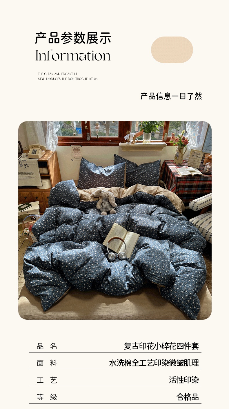 当前位置: 91家纺网 > 商品网购 > 床品套件 > 四件套 > 化纤活性四件套 > 阿曼达 2026新款日韩系复古印花小碎花软糯贴肤慵懒伴眠超治愈的床单床笠款四件套 小印-浆果藤.蓝【专版花型】