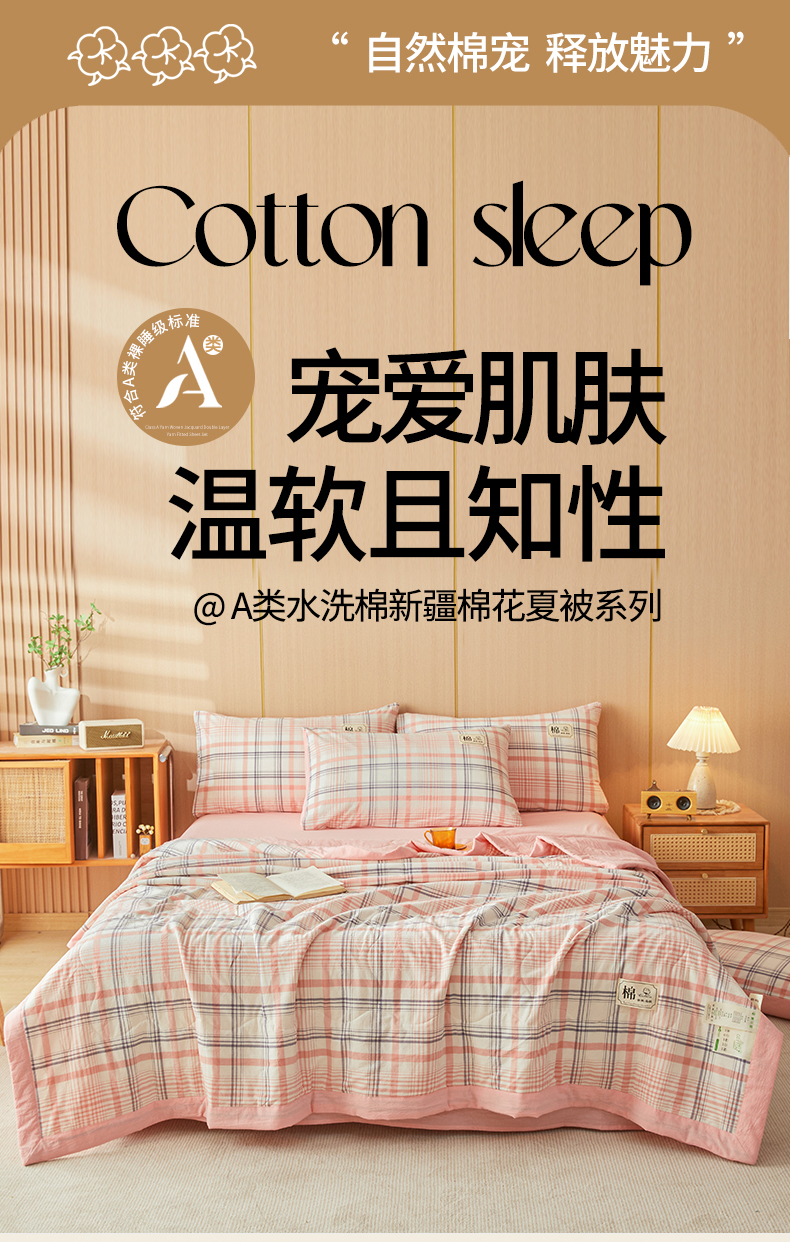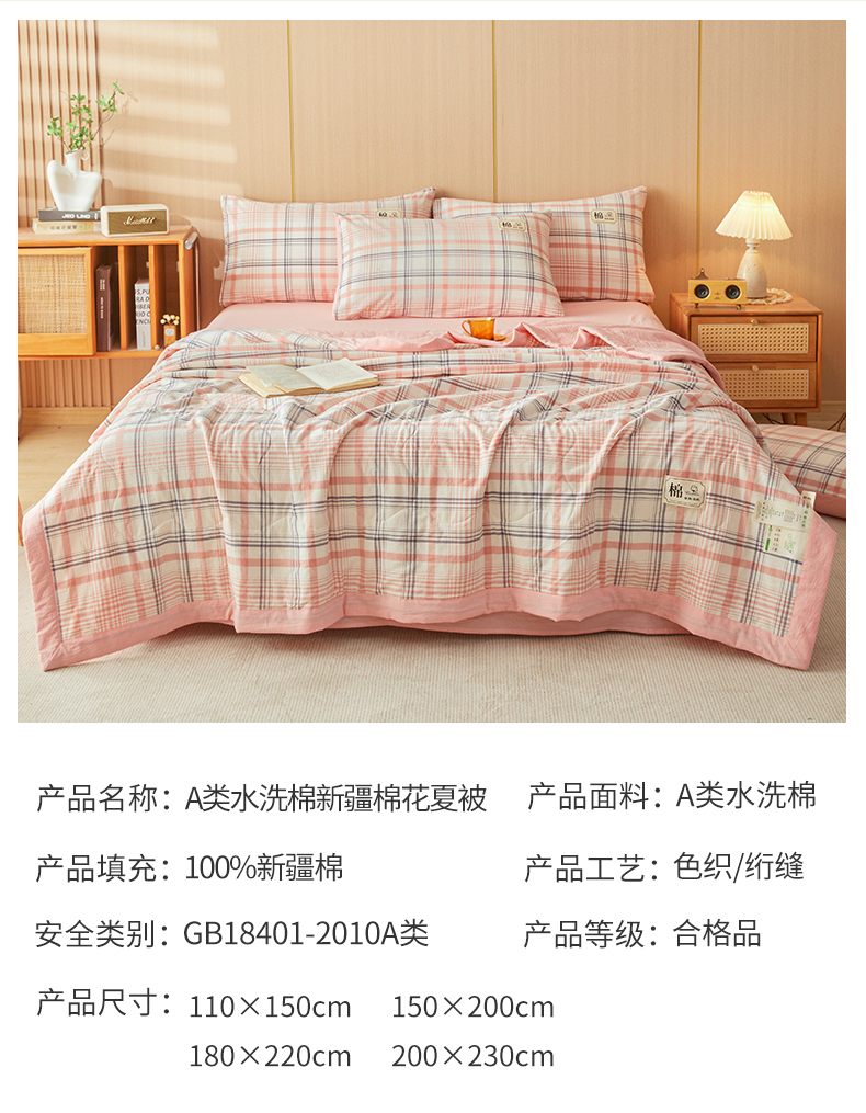 • 91家纺网 家纺一手货源 找家纺 招财星 2026新款国标无印风纯色100%新疆棉夏被夏凉被空调被棉花夏被棉花被子被芯爆款(含质检报告买家秀包检测) 格韵粉