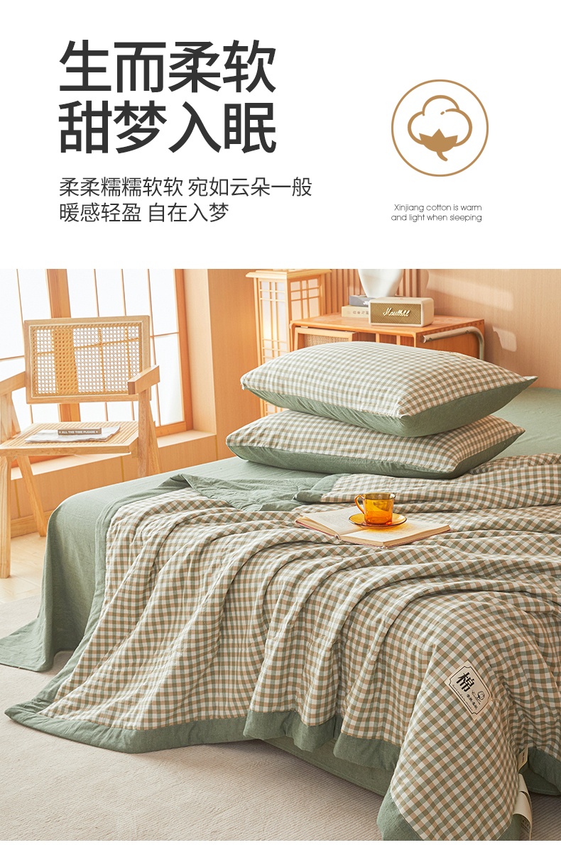 当前位置: 91家纺网 > 商品网购 > 被子 > 夏被 > 招财星 2026新款国标无印风纯色100%新疆棉夏被夏凉被空调被棉花夏被棉花被子被芯爆款(含质检报告买家秀包检测) 绿小格