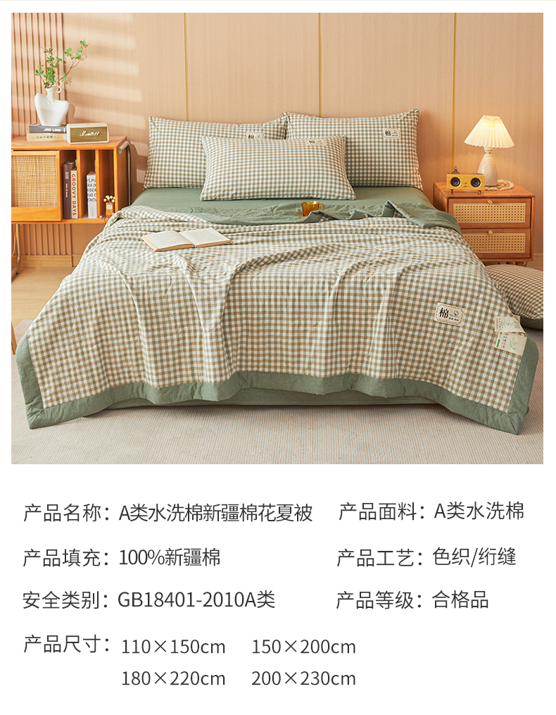 • 91家纺网 家纺一手货源 找家纺 招财星 2026新款国标无印风纯色100%新疆棉夏被夏凉被空调被棉花夏被棉花被子被芯爆款(含质检报告买家秀包检测) 绿小格