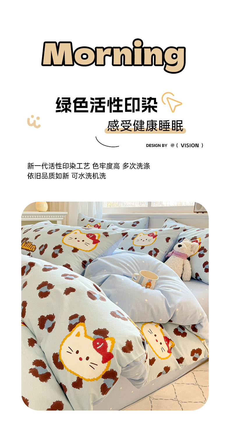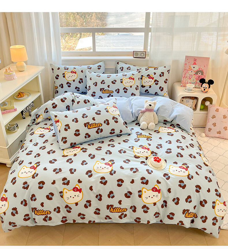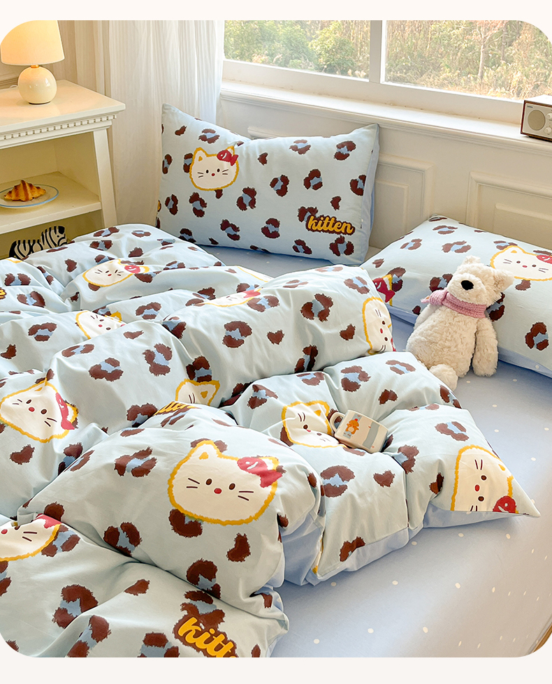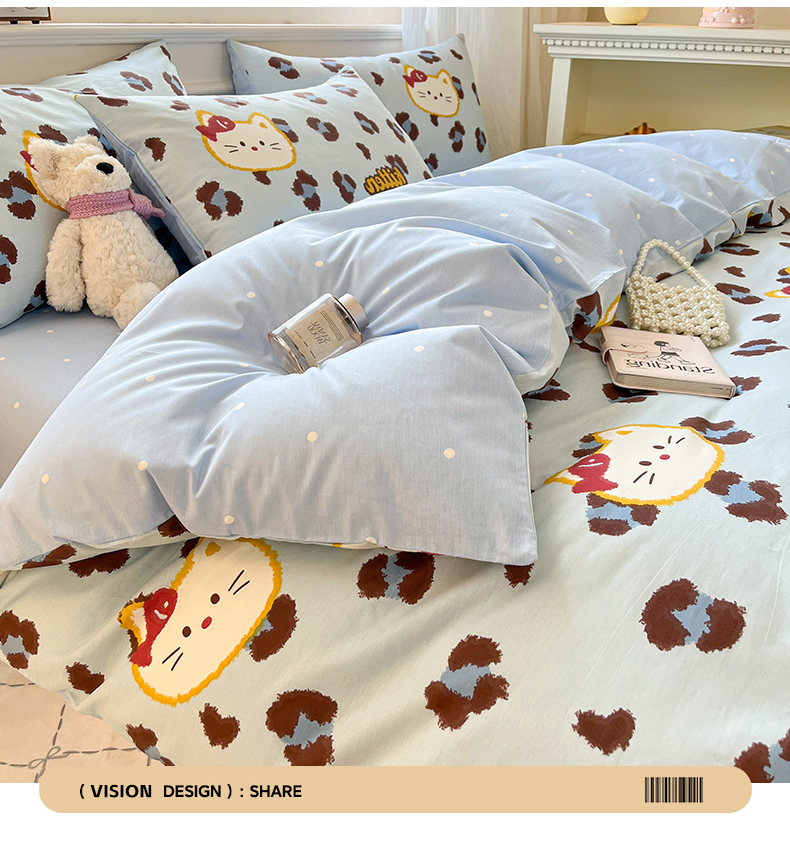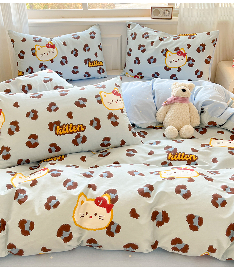 当前位置: 91家纺网 > 商品网购 > 床品套件 > 四件套 > 全棉普通四件套 > 博雅 2026新款全棉纯棉小卡通印花四件套 豹纹小猫-蓝