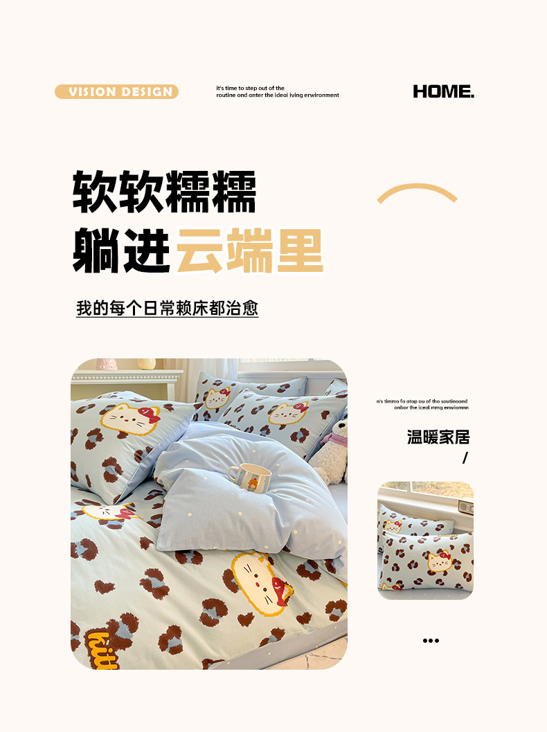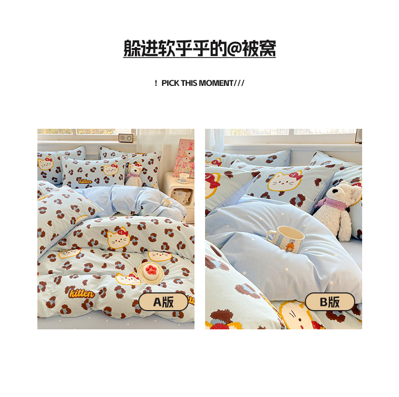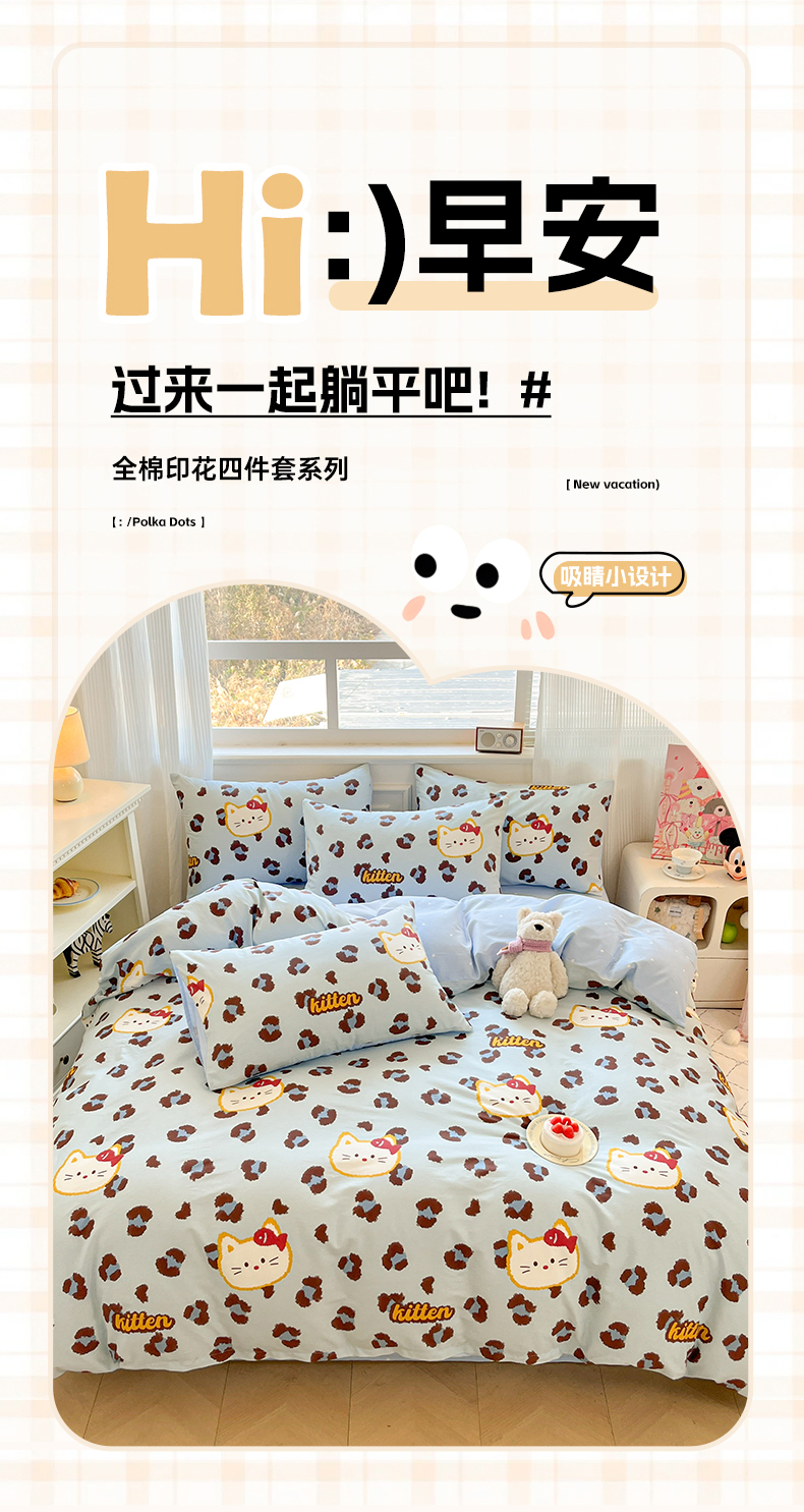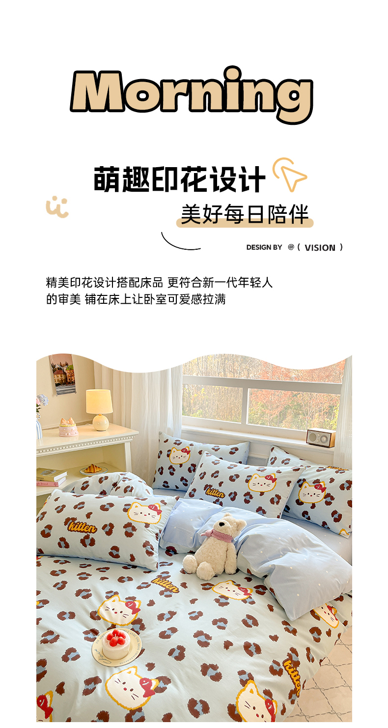 当前位置: 91家纺网 > 商品网购 > 床品套件 > 四件套 > 全棉普通四件套 > 博雅 2026新款全棉纯棉小卡通印花四件套 豹纹小猫-蓝