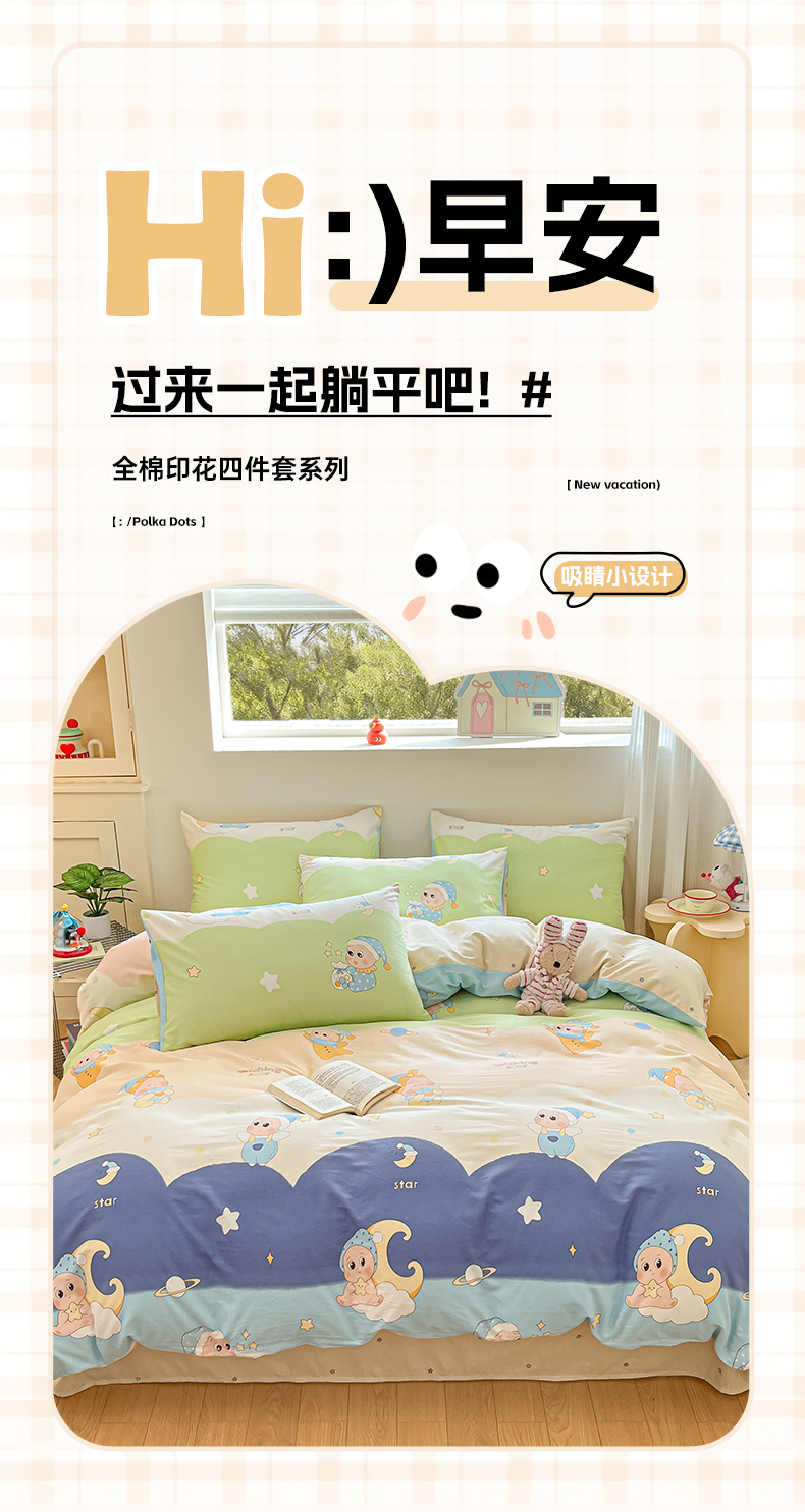当前位置: 91家纺网 > 商品网购 > 床品套件 > 四件套 > 全棉普通四件套 > 博雅 2026新款全棉纯棉小卡通印花四件套 小版-魔法棒星星人
