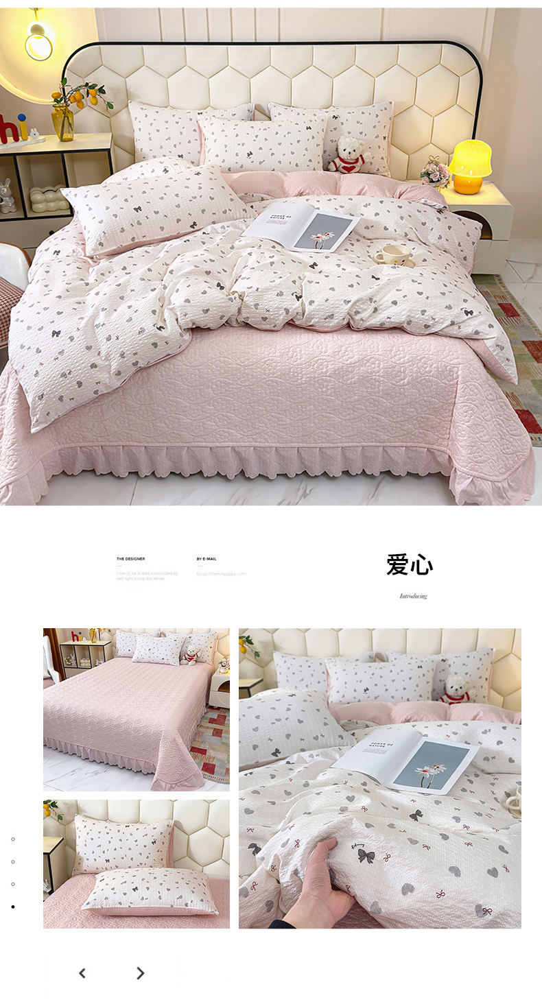 商品名称:凤杰家纺 2026新款云感双层纱床盖四件套 爱心