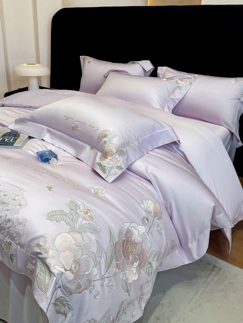 • 91家纺网 家纺一手货源 找家纺 (总)星蕴家纺 2026新款50贡缎长绒棉纯棉绣花四件套-花瑾,花瑾-邂逅粉,花瑾-晴山蓝,花瑾-梦幻紫,花瑾-清新绿