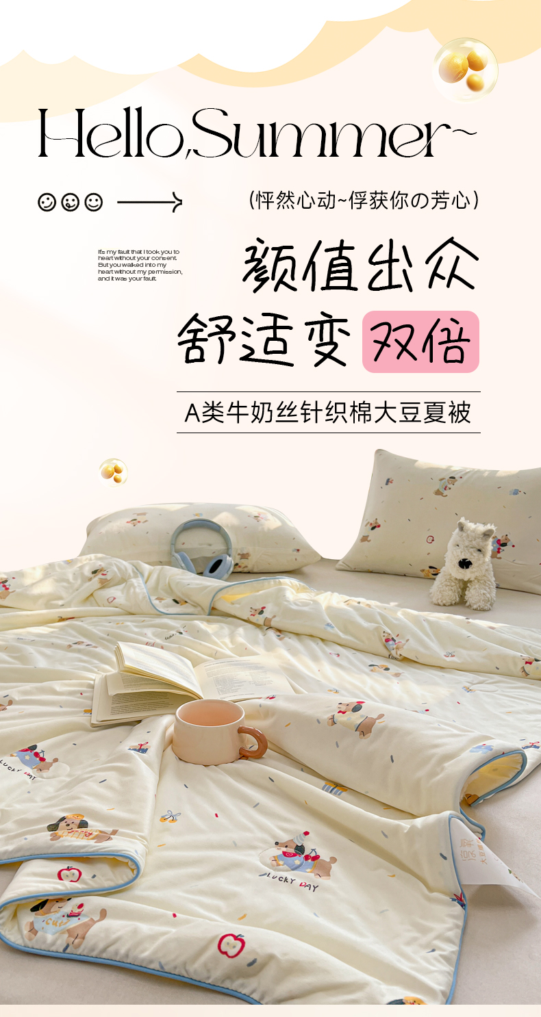 (总)优被业 2025新款A类全棉小清新大豆夏被,KT猫,宁夏,小夜猫,小迷糊,快乐小狗,泡泡糖,草莓园,集美