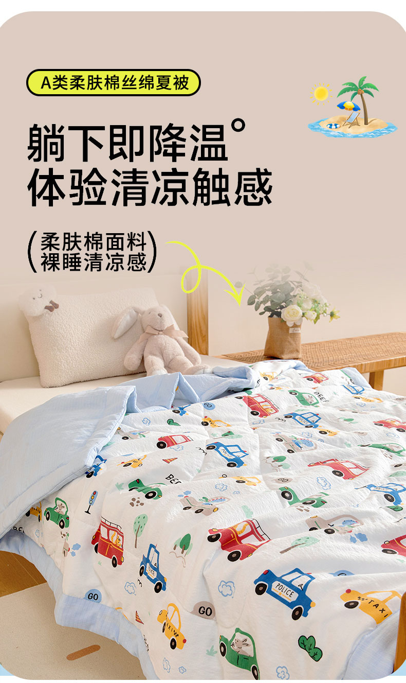 商品名称:御棉坊 2026新款A类柔肤棉儿童夏被宝宝空调被幼儿园午睡夏凉被丝绵薄被子 赛车达人