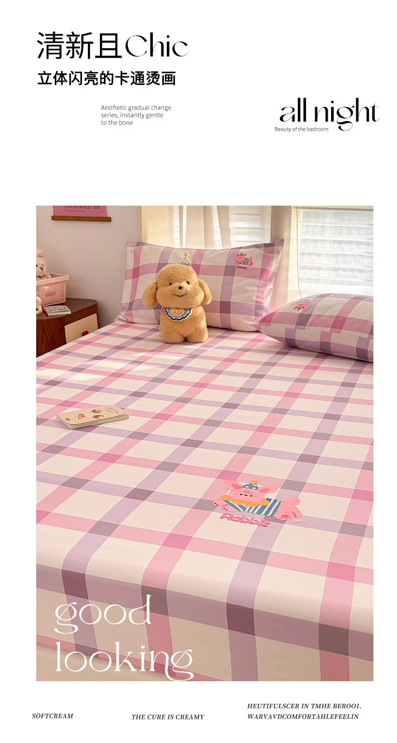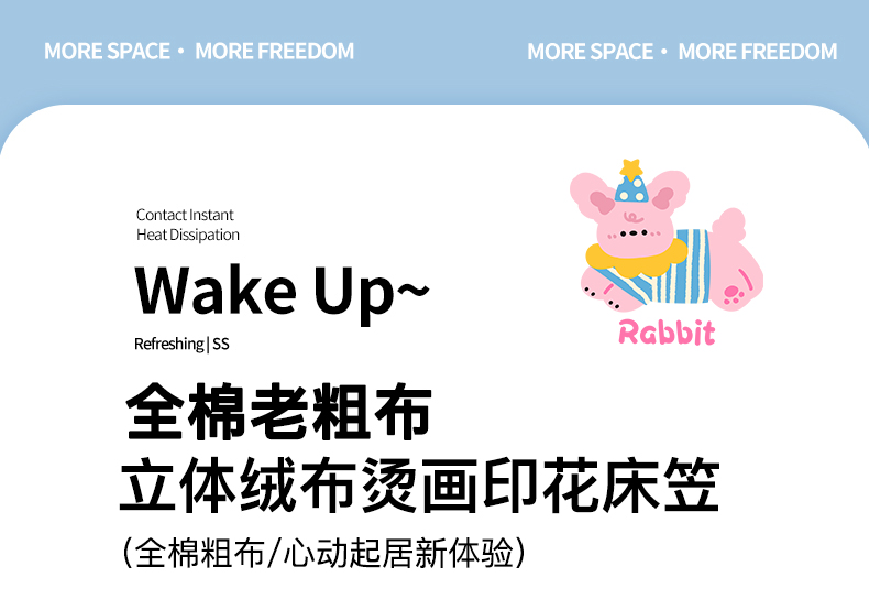 商品名称:卧趣家纺 2026新款全棉老粗布凉席席子床笠单件床笠单品单床笠绒布贴系列 甜梦兔