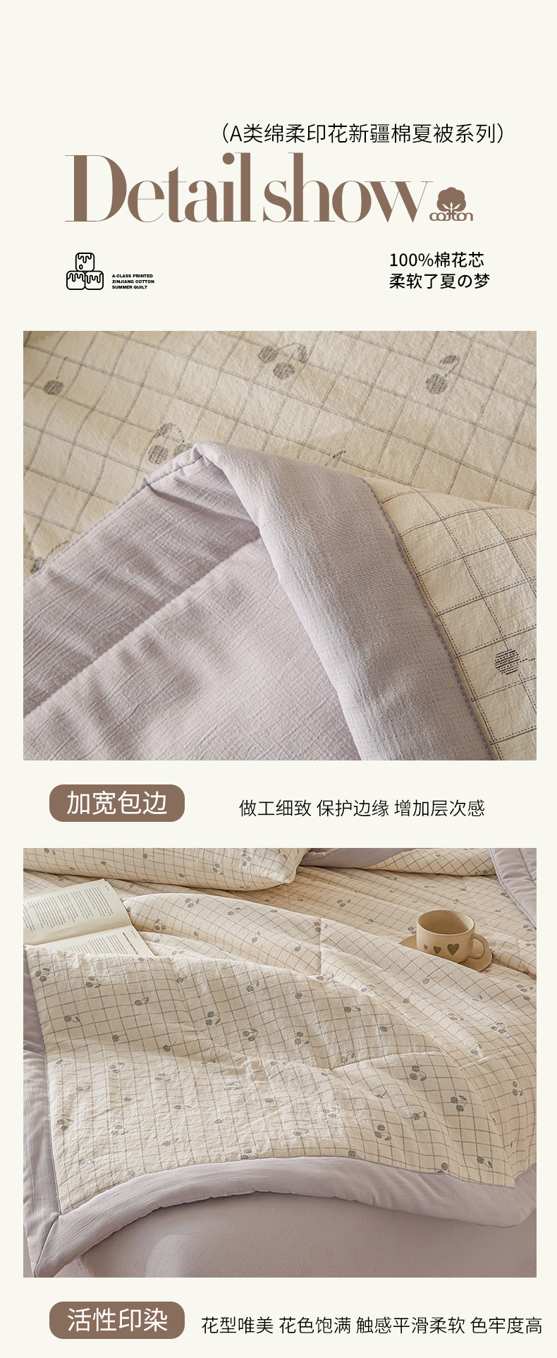 商品名称:尊妙被业 2026新款亚麻印花新疆棉花夏被 樱桃梦