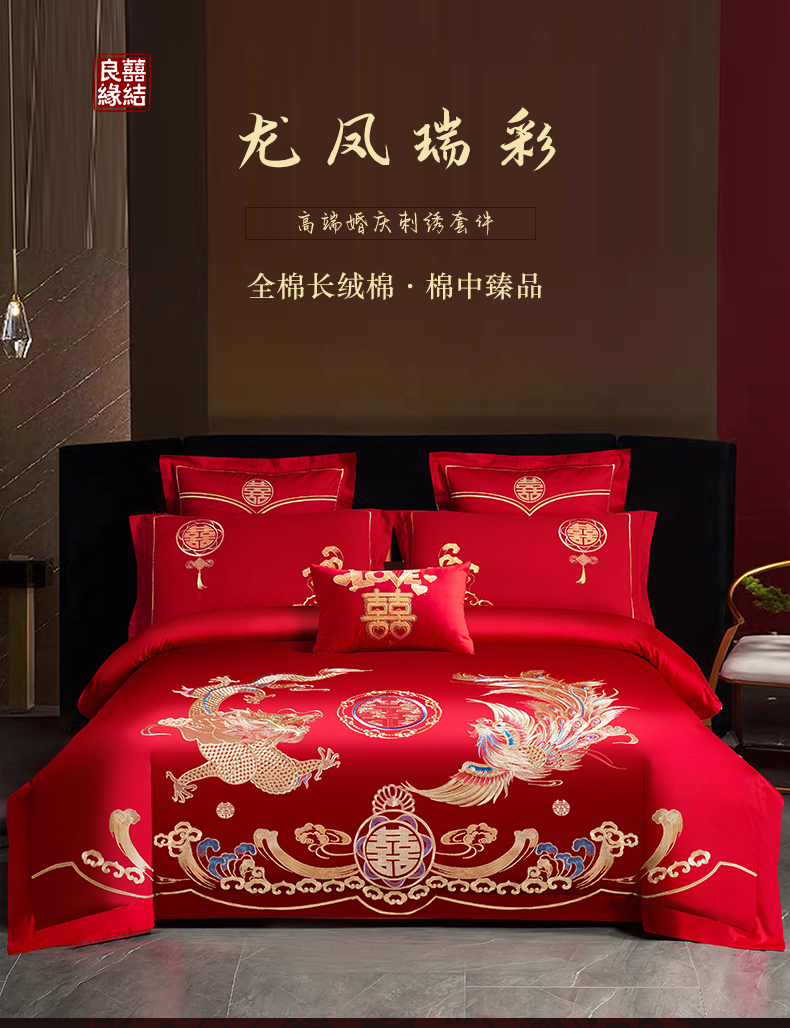 当前位置: 91家纺网 > 商品网购 > 床品套件 > 四件套 > 婚庆四件套 > 富之雅婚庆 2026新款全棉刺绣长绒棉婚庆四件套多件套 龙凤瑞彩