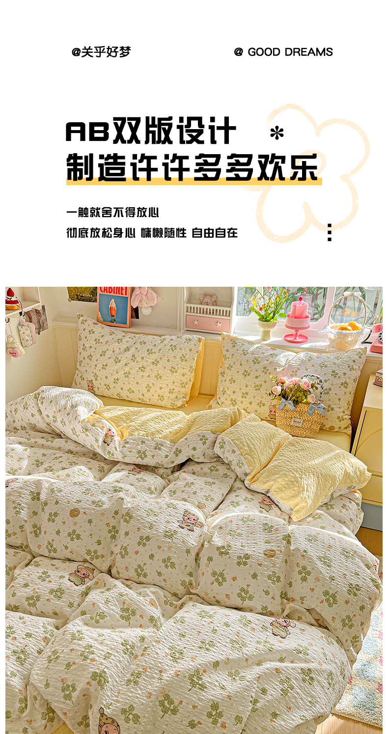 当前位置: 91家纺网 > 商品网购 > 床品套件 > 四件套 > 其它四件套 > 悦织湾家纺 2026新款泡芙棉印花四件套单品单被套枕套时尚轻奢卡通小碎花学生宿舍用品三四件套 甜美星星人