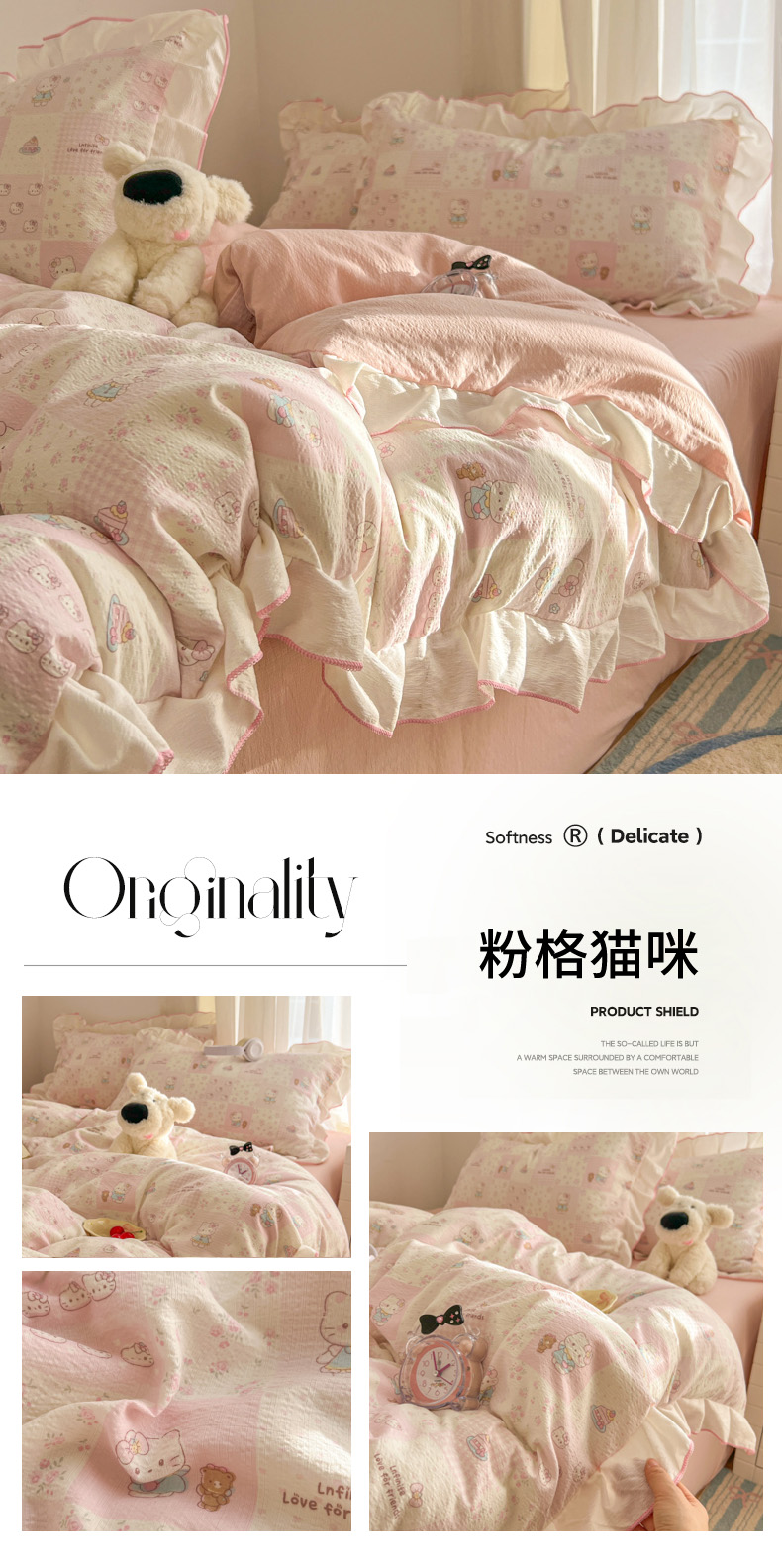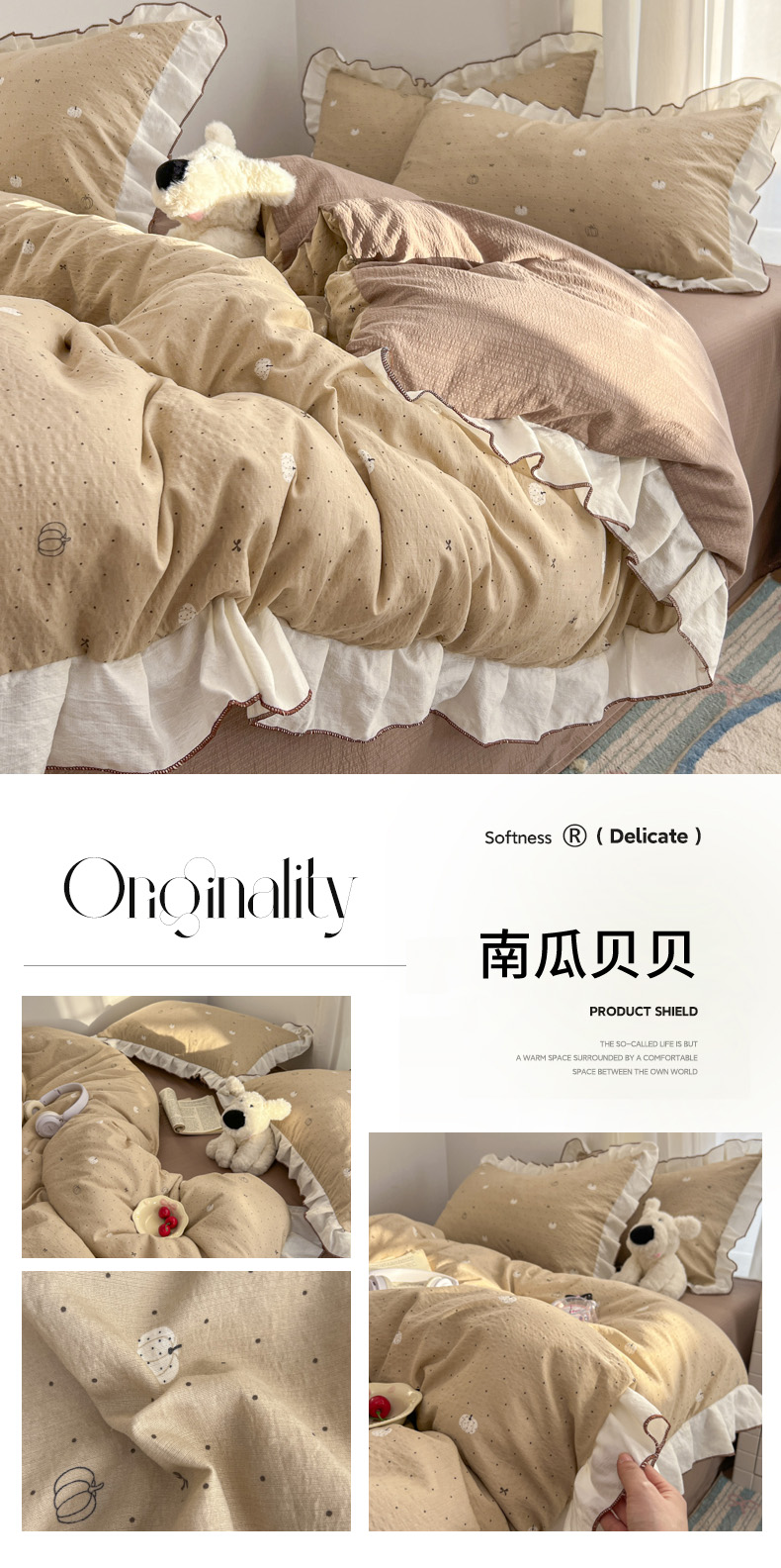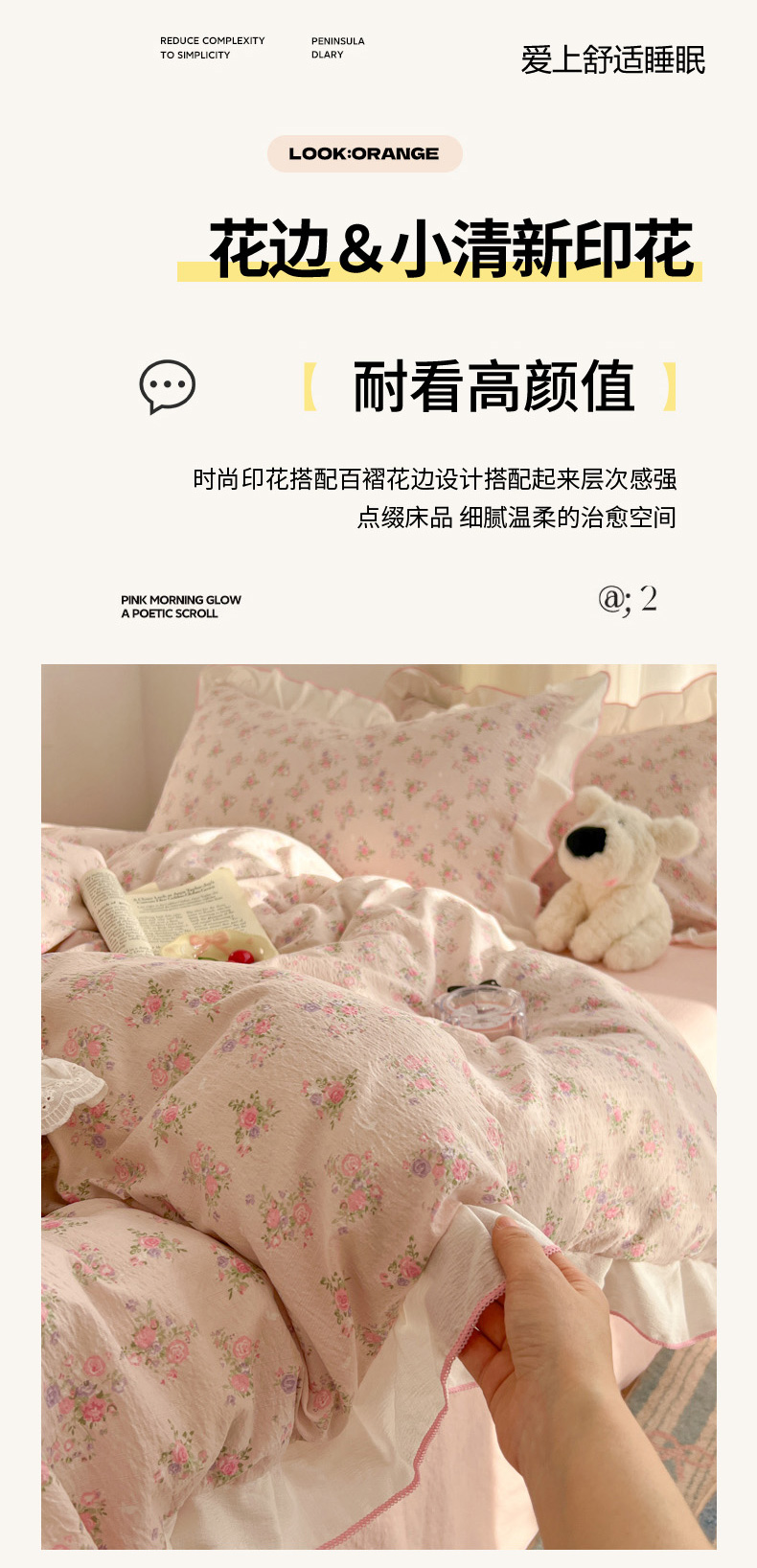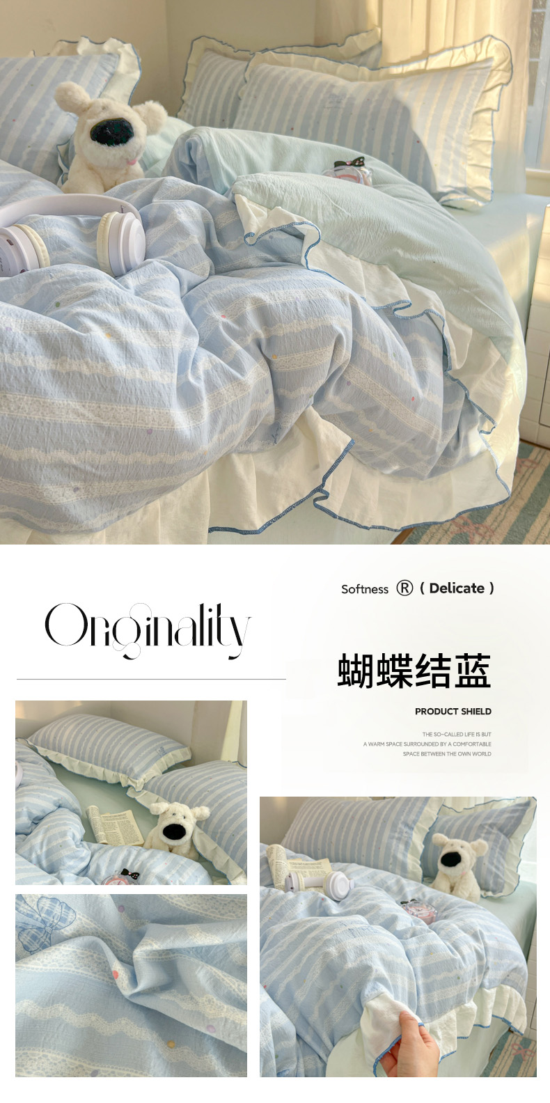当前位置: 91家纺网 > 商品网购 > 床品套件 > 四件套 > 其它四件套 > 柒月家居 2026新款小清新木棉皱皱纱花边款四件套 花田梦