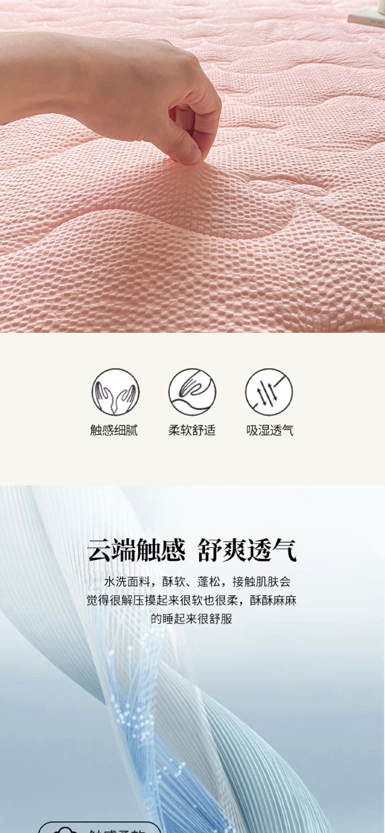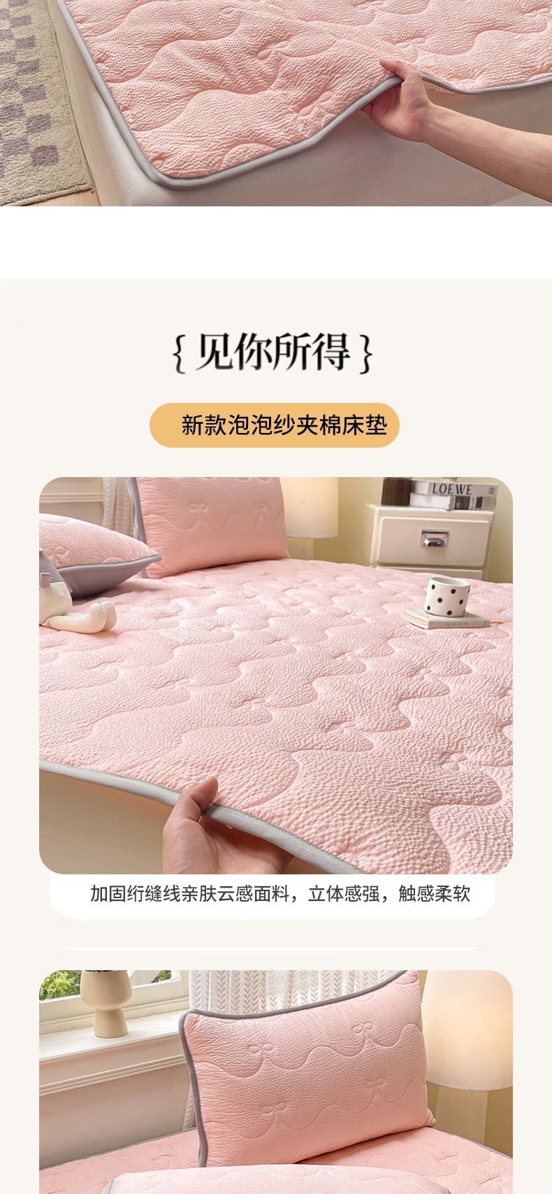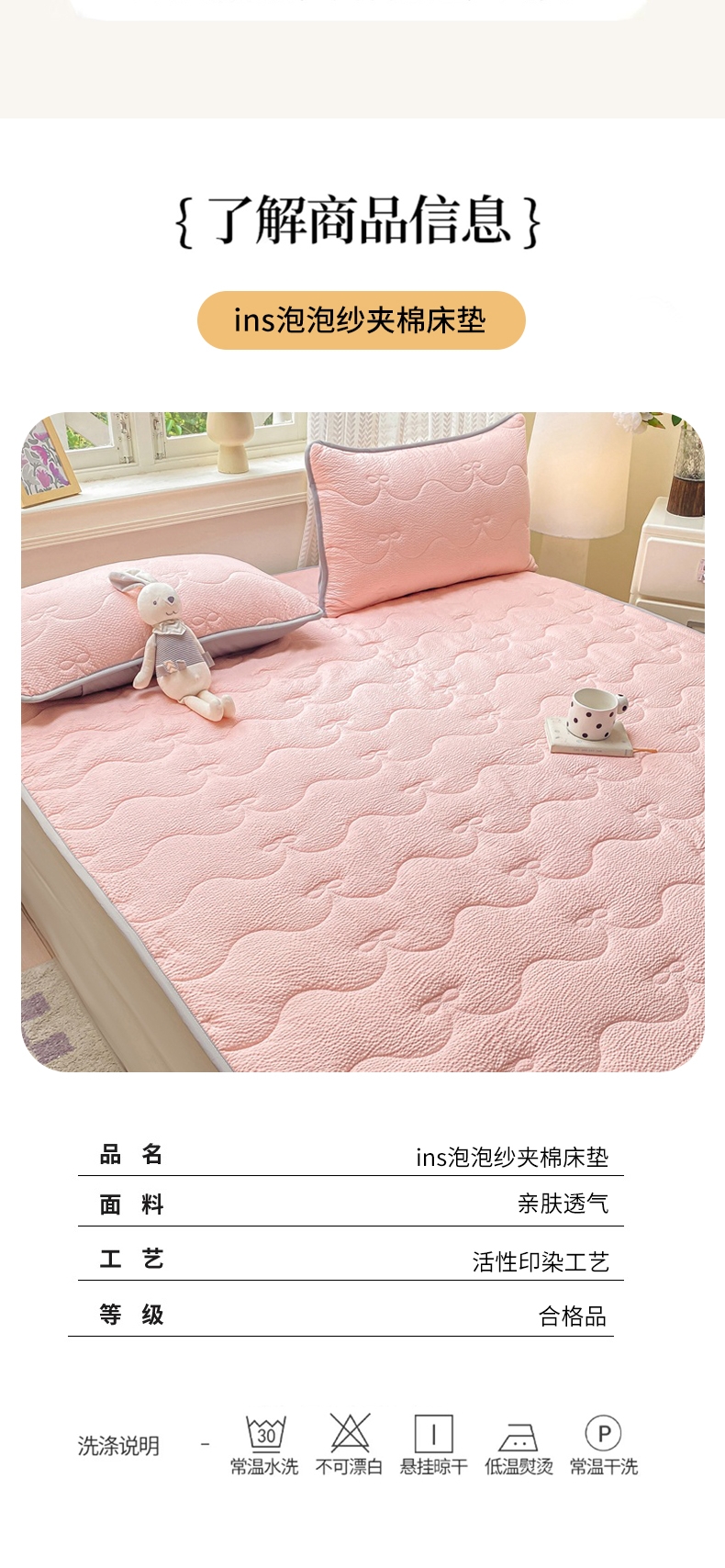 当前位置: 91家纺网 > 商品网购 > 床垫/床褥 > 普通床垫 > 麒东家纺 2026新款春夏泡泡纱夹棉床垫系列 玉色