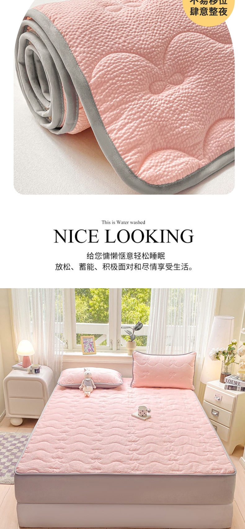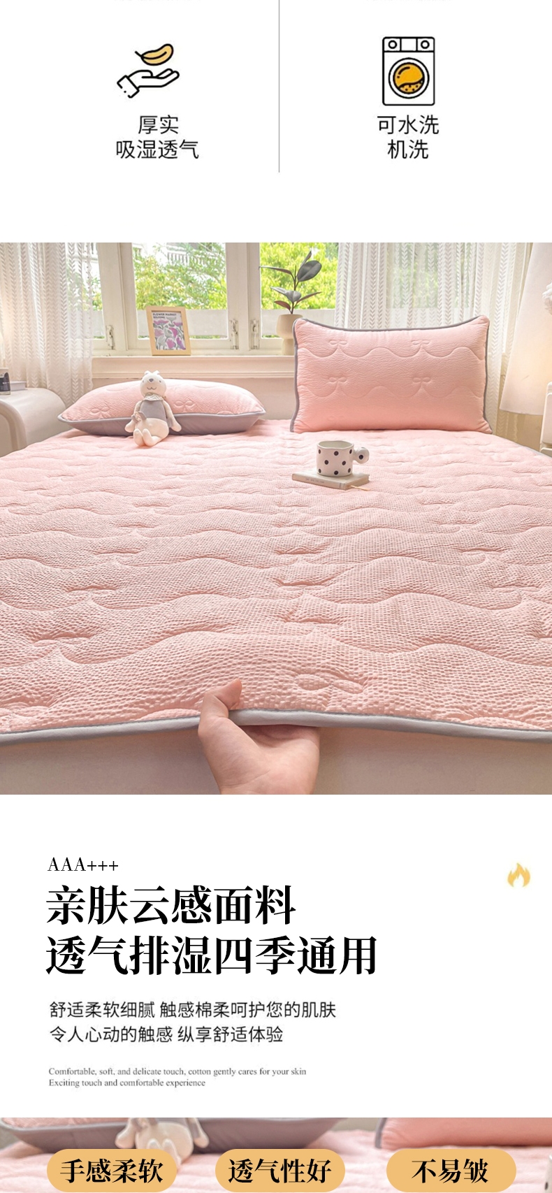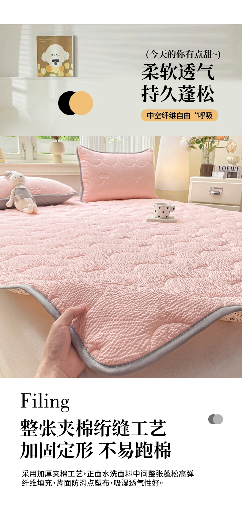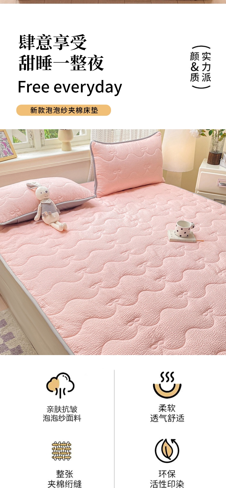 当前位置: 91家纺网 > 商品网购 > 床垫/床褥 > 普通床垫 > 麒东家纺 2026新款春夏泡泡纱夹棉床垫系列 玉色