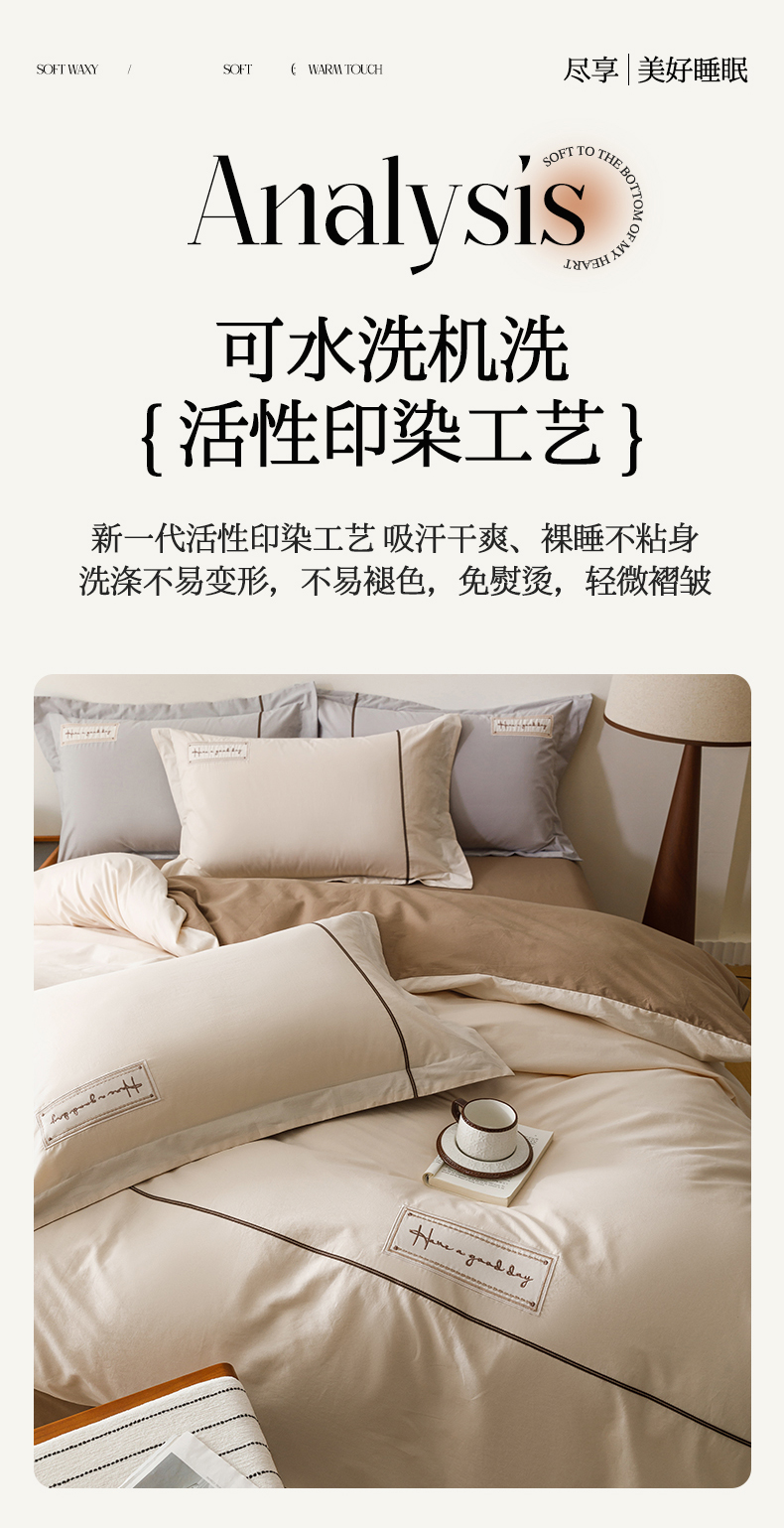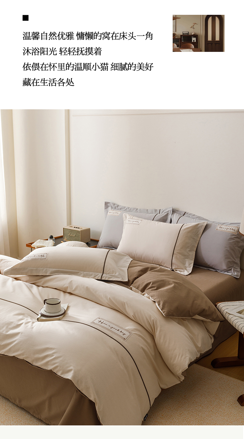 艾莱家纺 2026新款A类水洗棉加厚绣花刺绣四件套-卡尔文 卡尔文-牛奶布丁