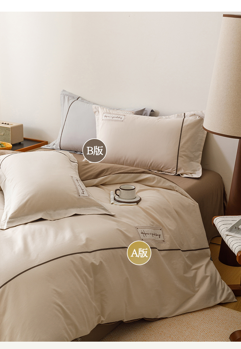 (总)艾莱家纺 2026春夏新款A类棉麻贴布刺绣加厚四件套-杰森,杰森-本色+卡其,杰森-绿色+浅灰,杰森-浅灰+卡其,杰森-紫色+浅灰