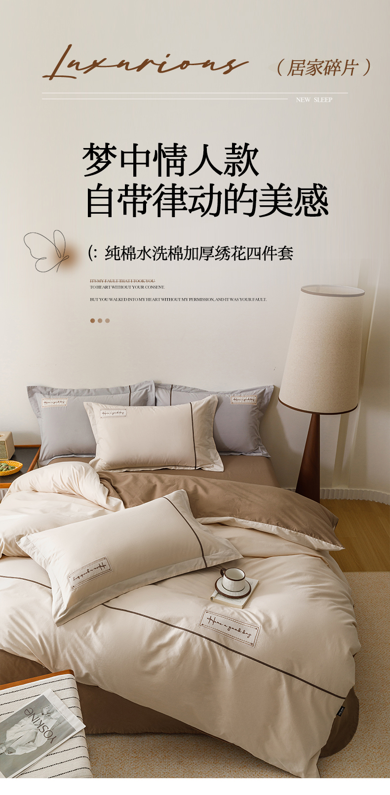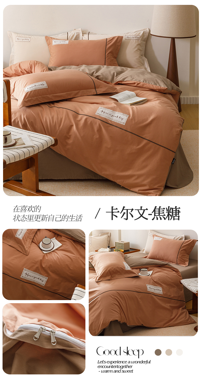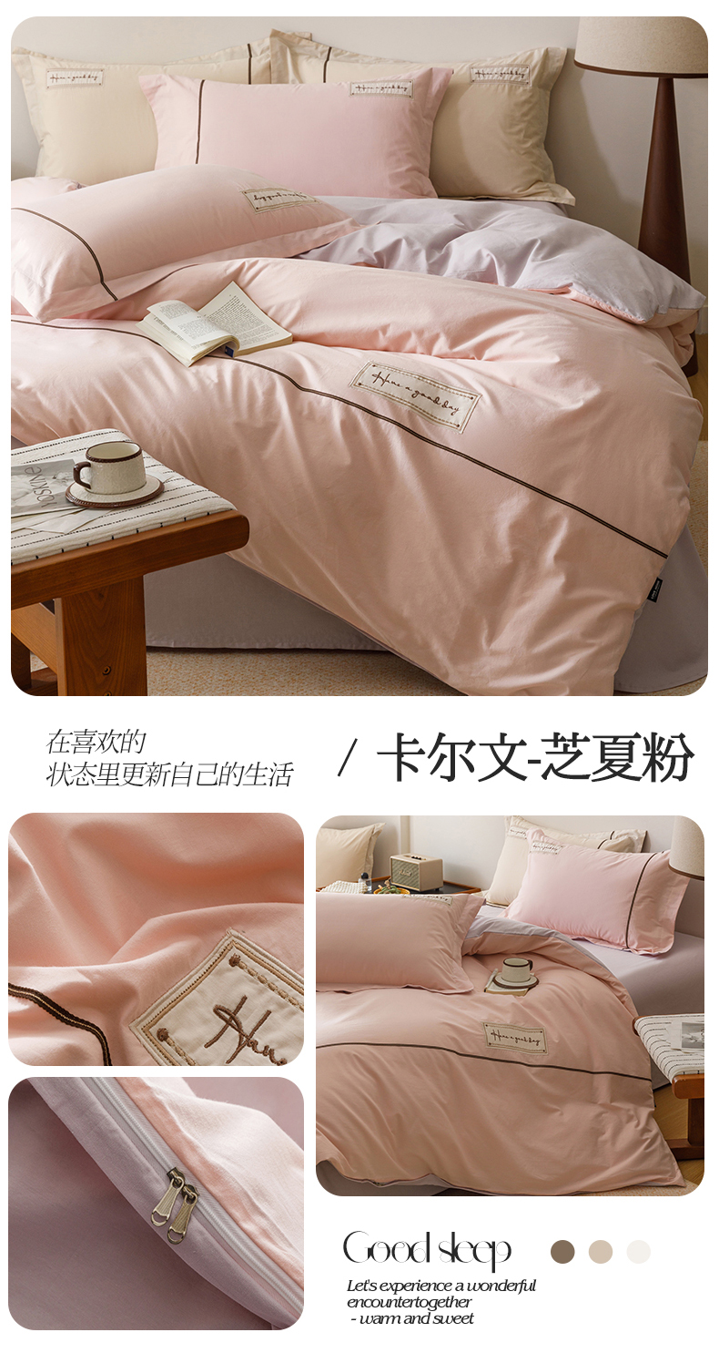 (总)艾莱家纺 2026新款A类水洗棉加厚绣花刺绣四件套-卡尔文,卡尔文-琥珀银,卡尔文-焦糖,卡尔文-牛奶布丁,卡尔文-芝夏粉