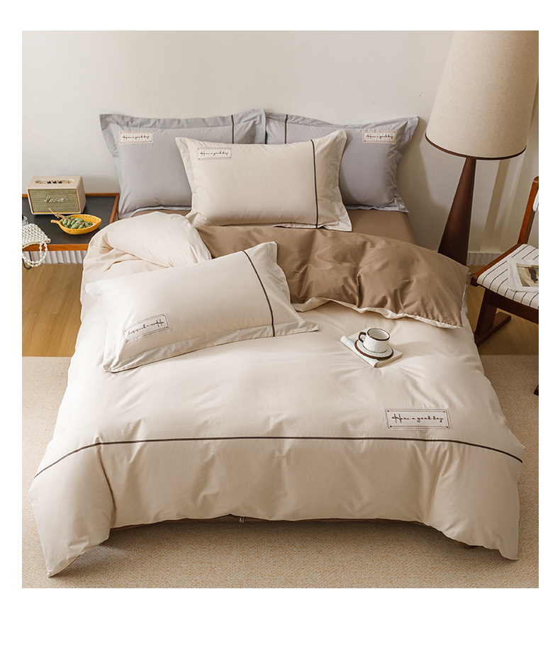 商品名称:艾莱家纺 2026新款A类水洗棉加厚绣花刺绣四件套-卡尔文 卡尔文-牛奶布丁