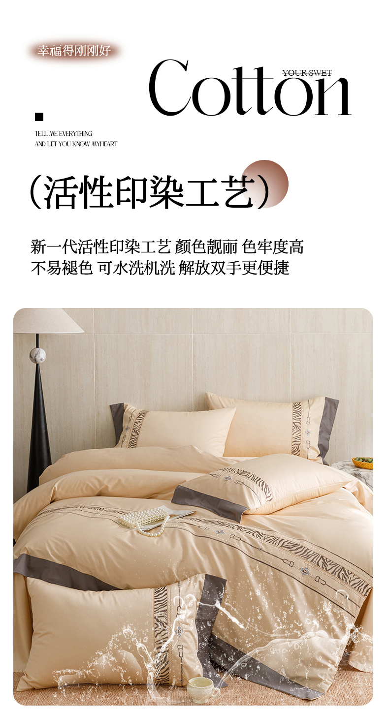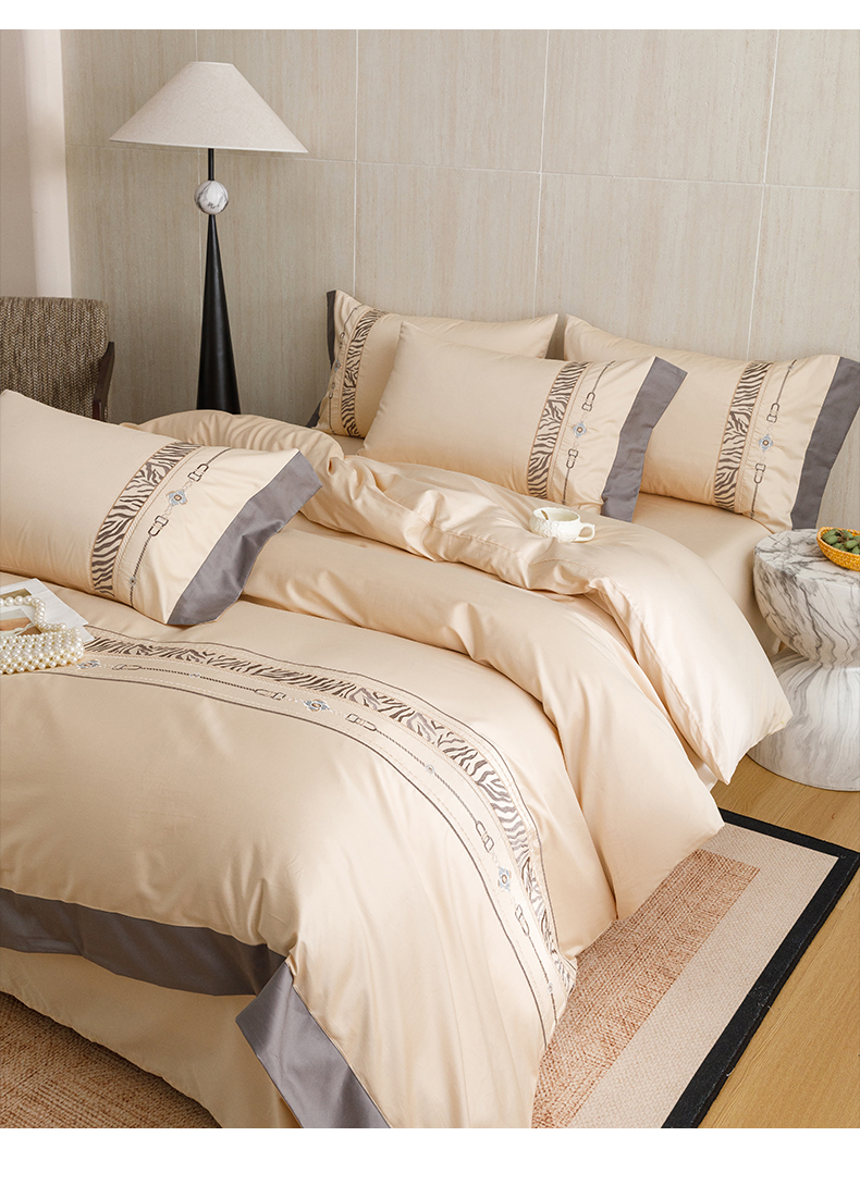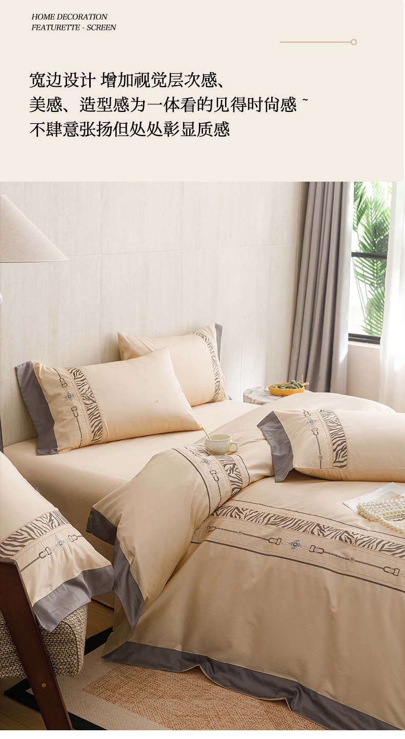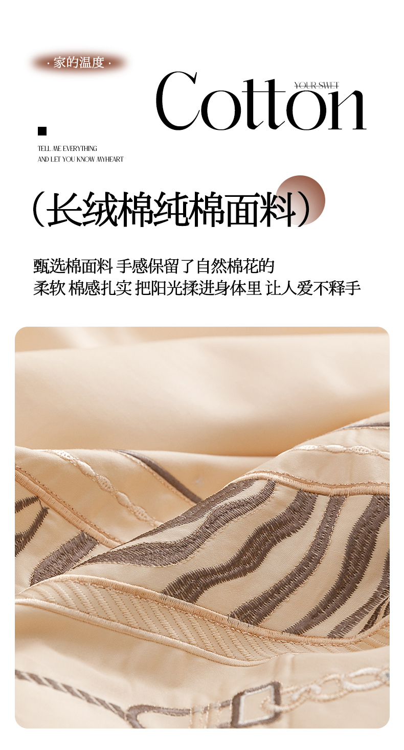艾莱家纺 2026新款A类长绒棉纯棉刺绣四件套-奢意 奢意-米驼