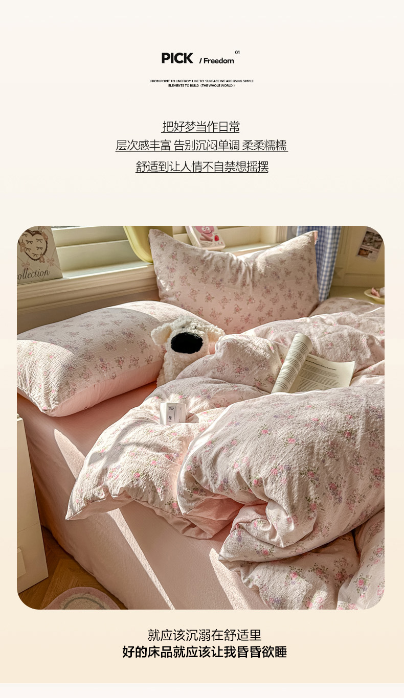 当前位置: 91家纺网 > 商品网购 > 床品套件 > 四件套 > 其它四件套 > 柒月家居 2026新款云感皱皱纱小清新木棉四件套 碎花飘飘