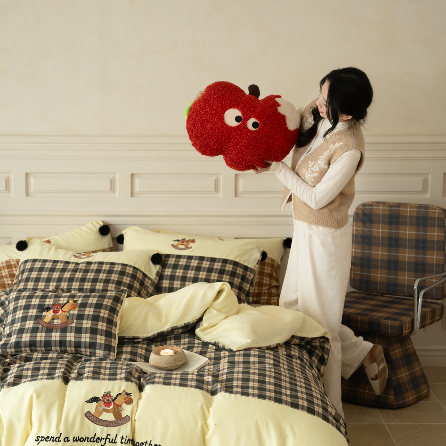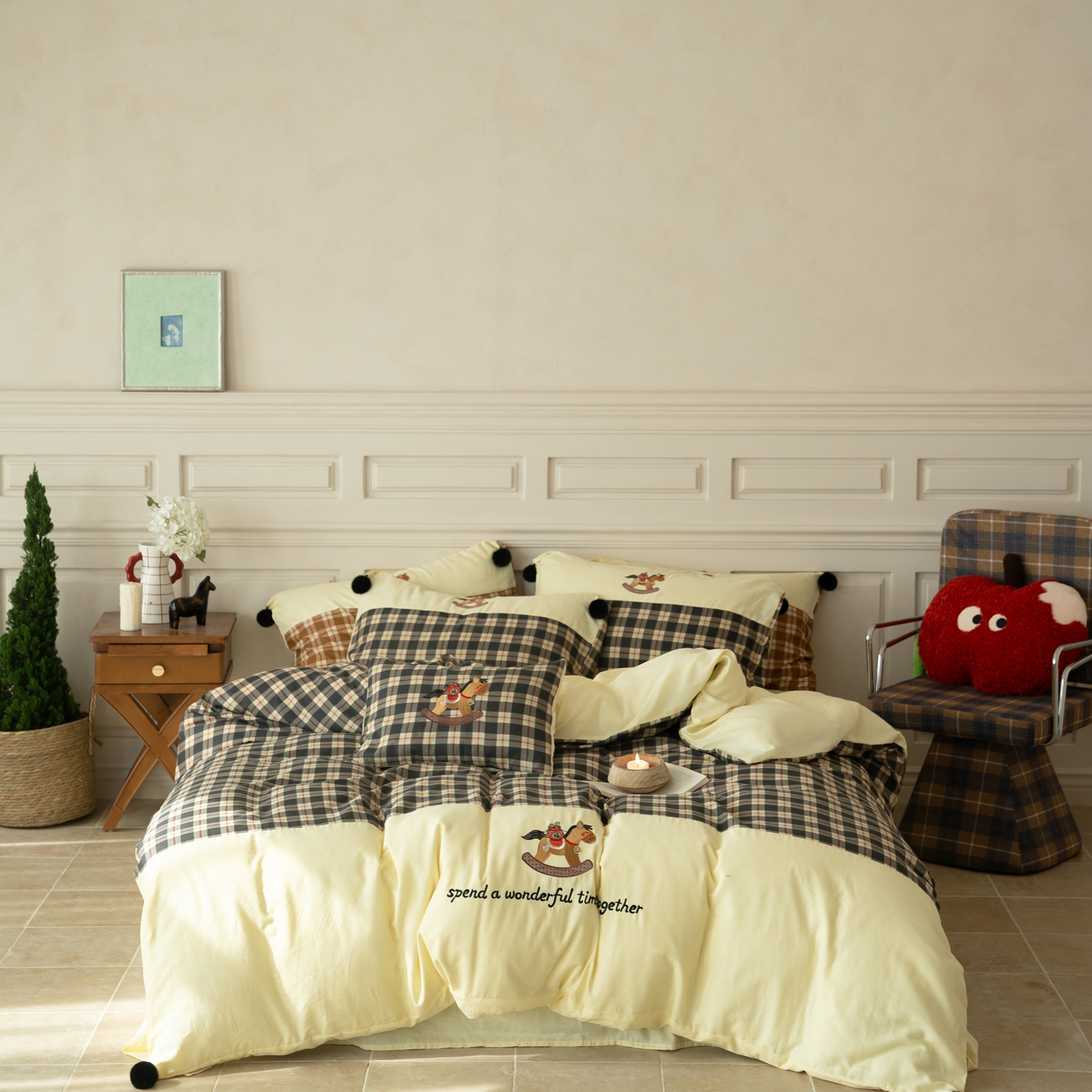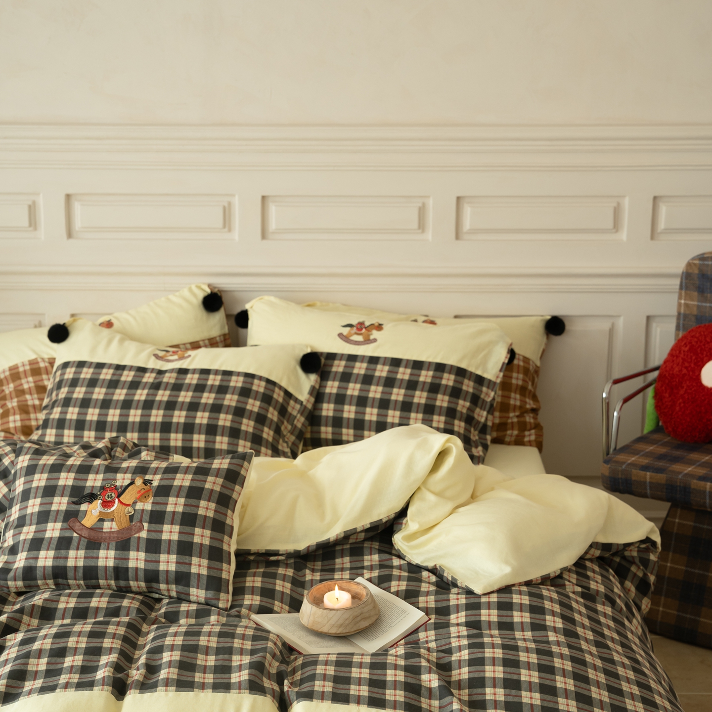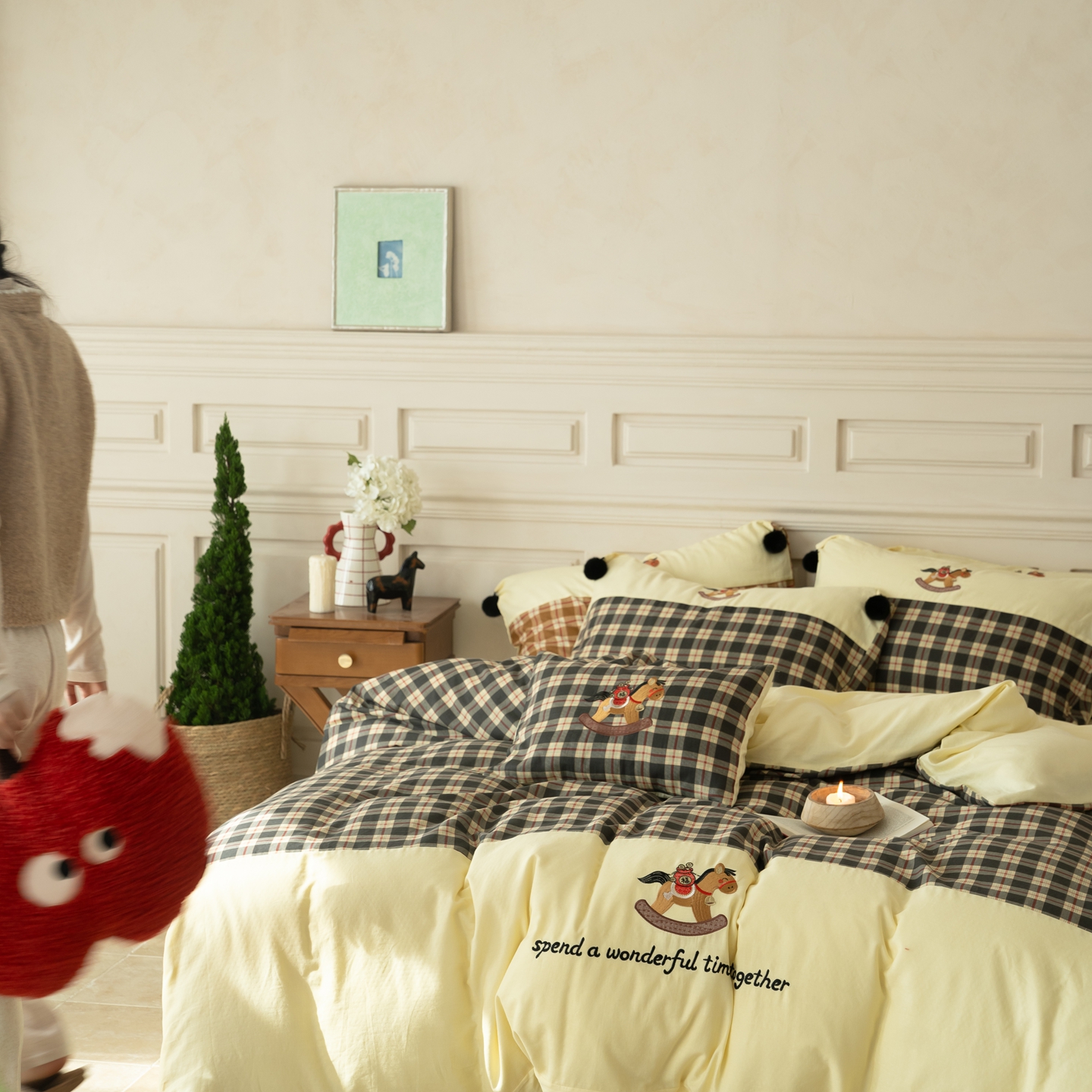 (总)优然居家纺 2026新款全棉双层纱刺绣四件套-马上有钱(控价260/328/348),马上有钱-黑格,马上有钱-黄格,马上有钱-绿格