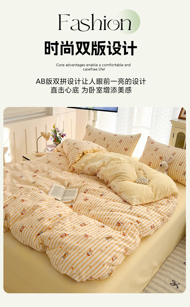 (总)瑞钰 2026新款A类古法水洗仿棉云感纱四件套,蓝调兔语,豹纹,彩色心动,初恋,粉格KT猫,格调熊,海边童话,蝴蝶飞,狂欢part,绿野仙踪,满天星,浅蓝童话集,软萌七彩兔,甜品屋,甜心花园,小狗日记,斑马,花晨月汐,焦糖棕格,慕兮,南风,秋水,小象格,小夜曲,幸运熊,嫣然,紫烟