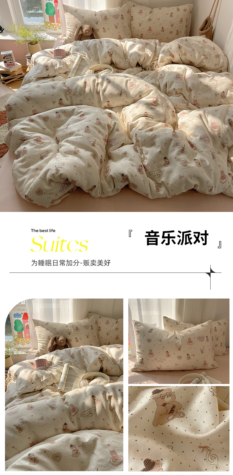 商品名称:萝莉家纺 2026新款全棉双层纱四件套 快乐大家族