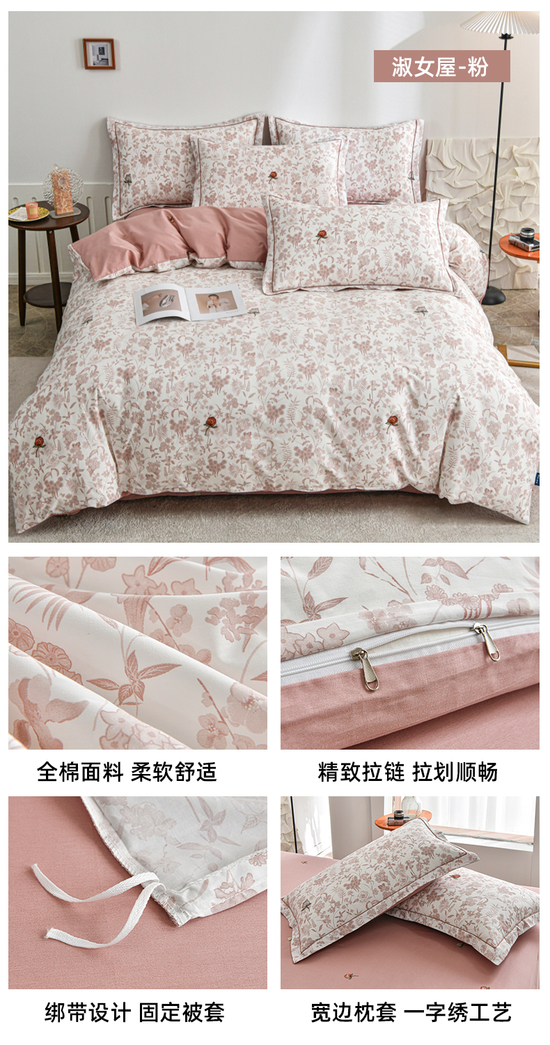 磨毛世家家纺 206新款铂金凯丽全棉四件套 花季少女
