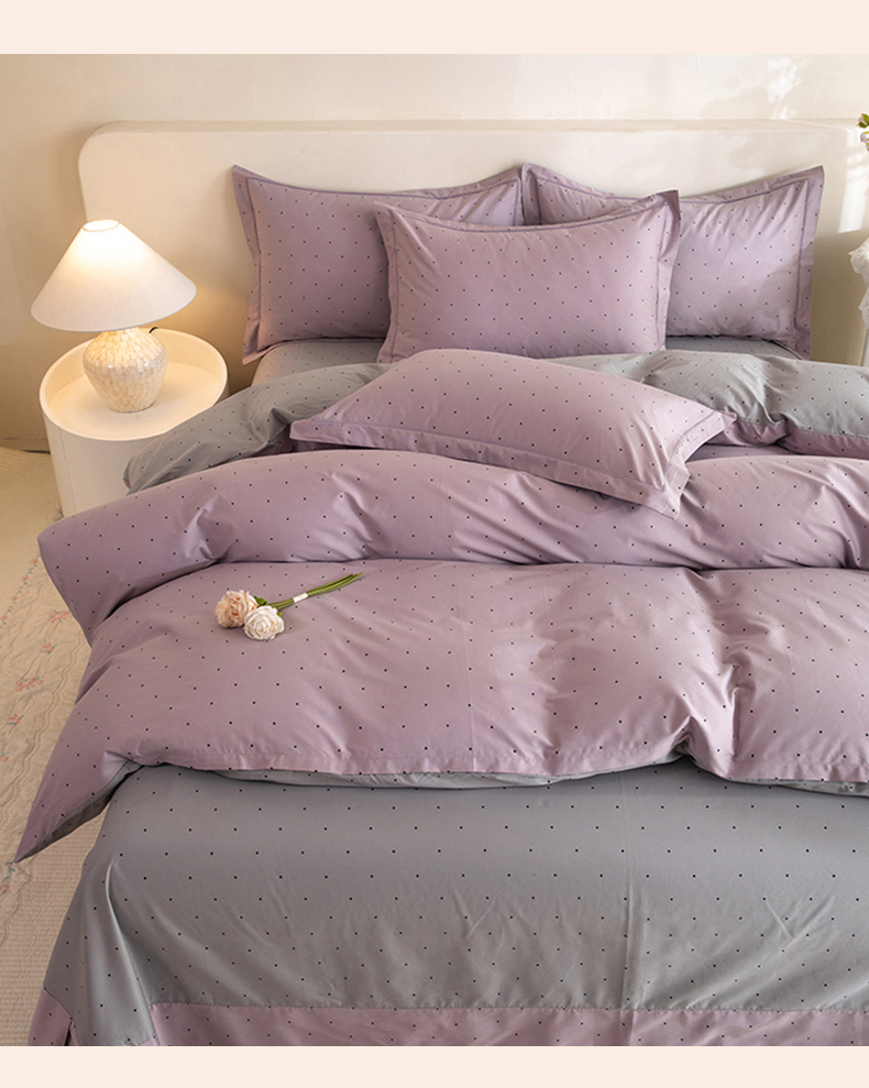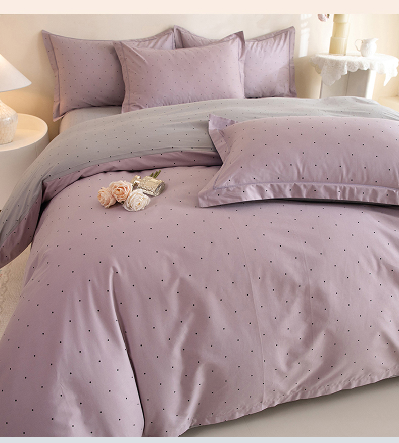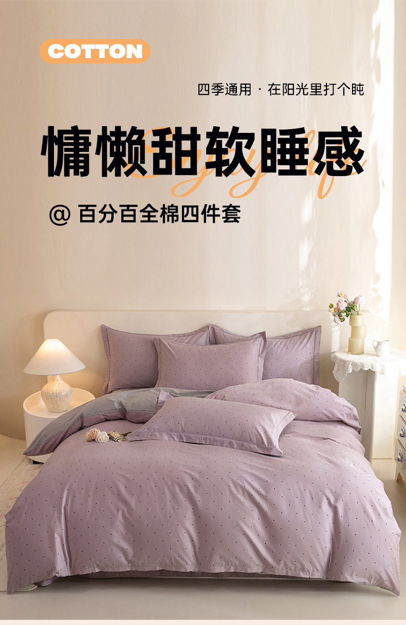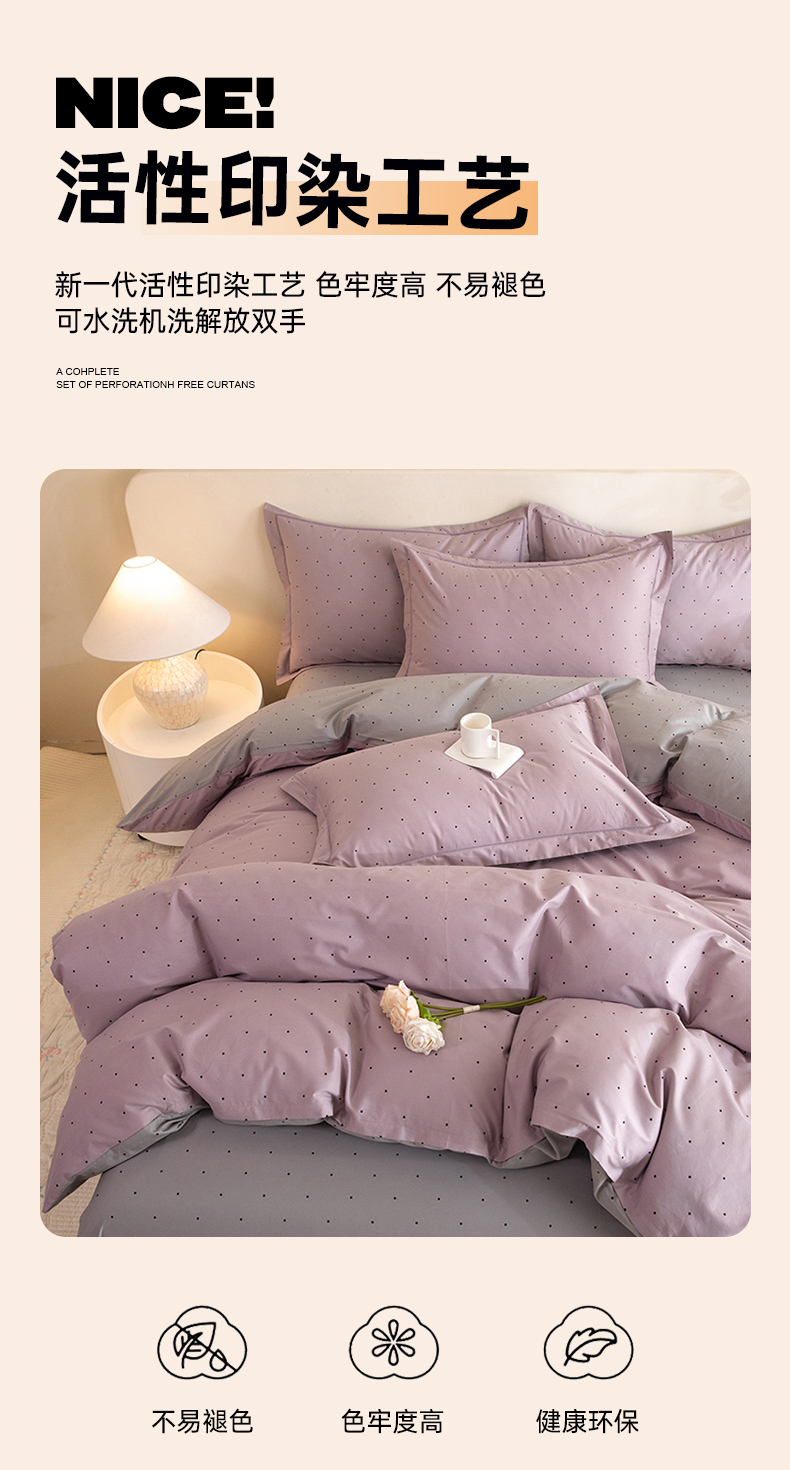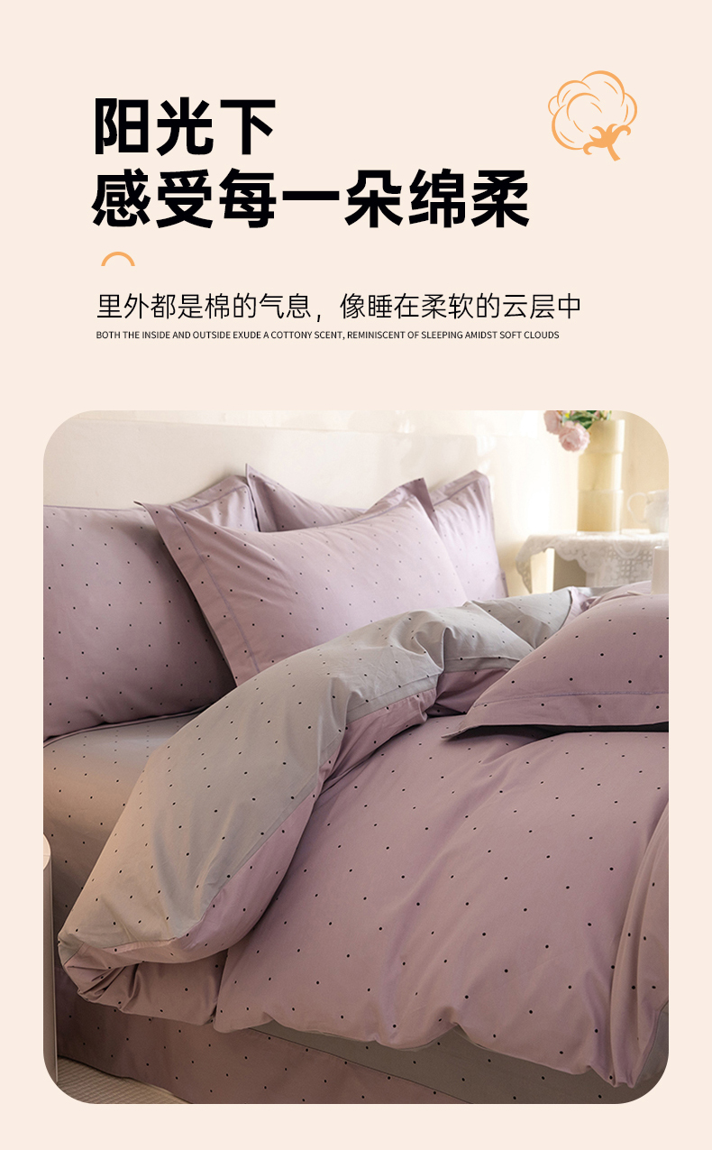 商品名称:磨毛世家家纺 206新款铂金凯丽全棉四件套 芝芙-紫灰