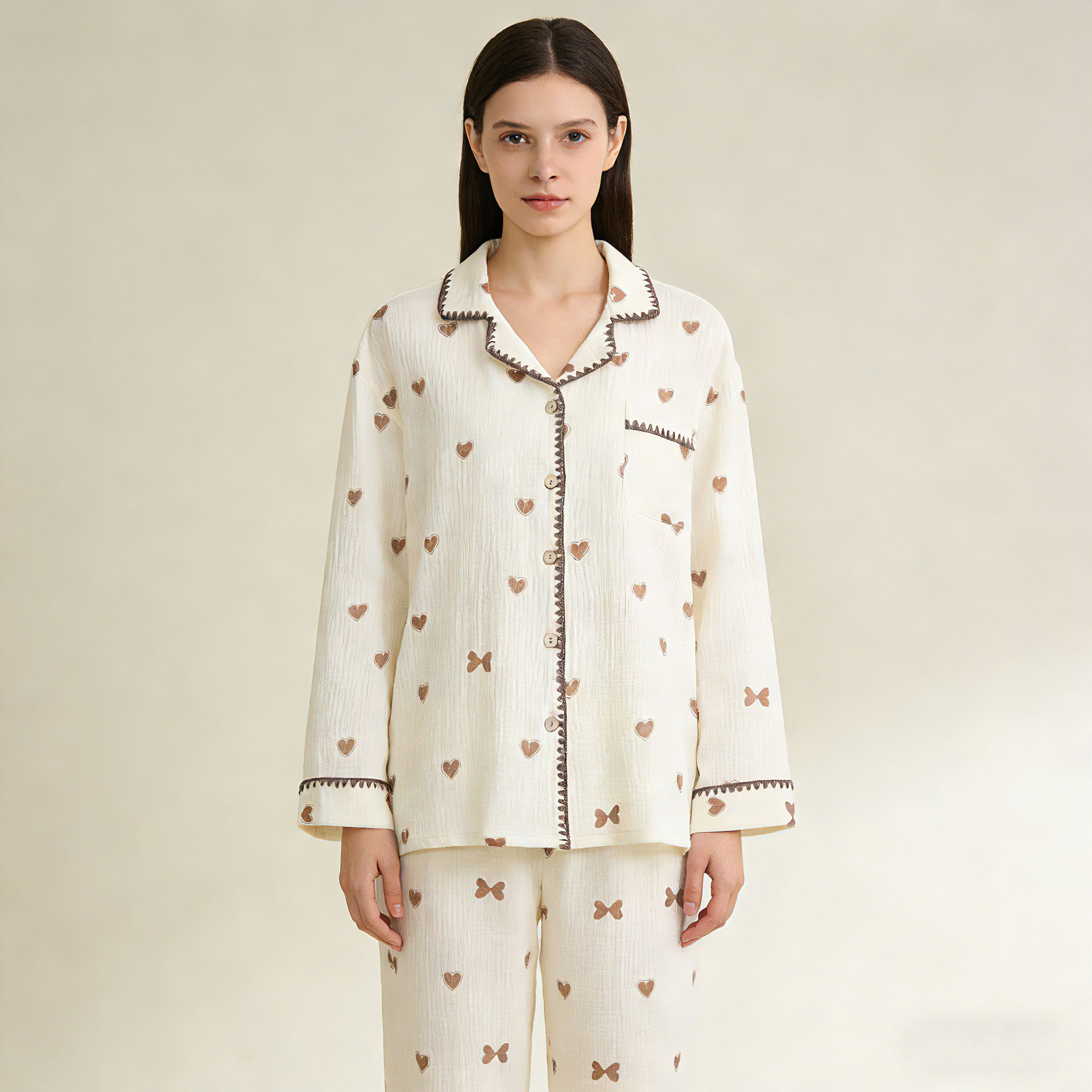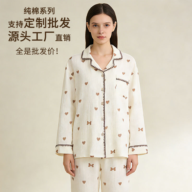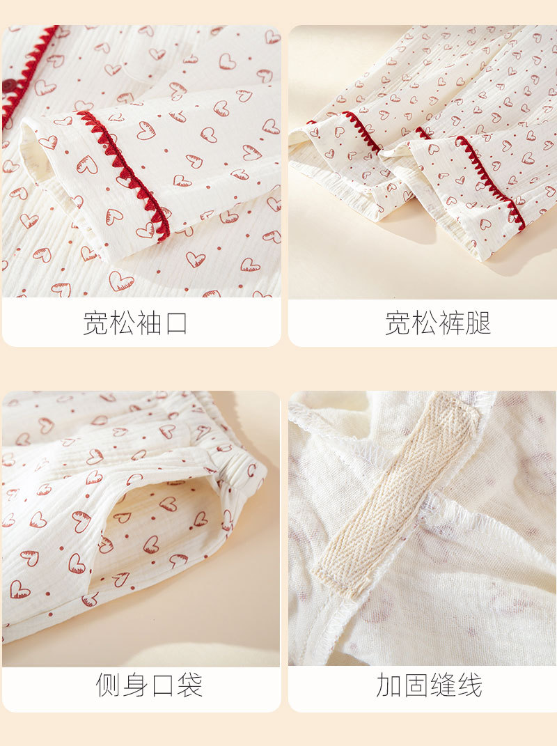 (总)洛兰沙家居馆 26春季新款 小熊纯棉绉布爱心睡衣可爱卡通长袖可外穿家居服套装