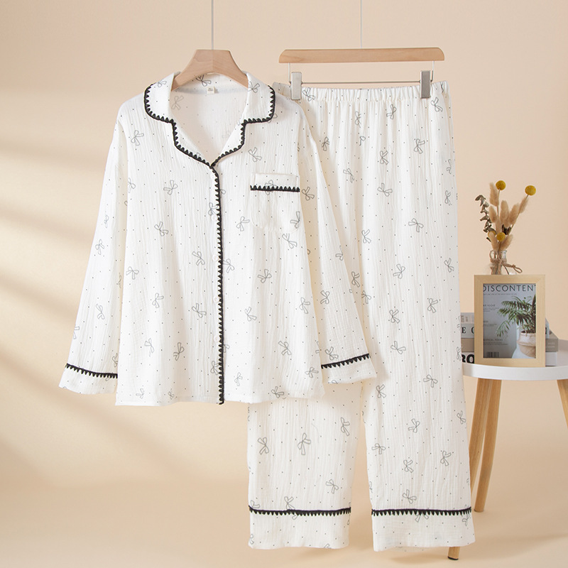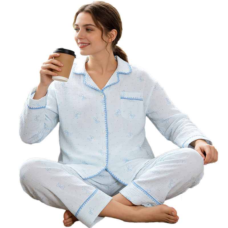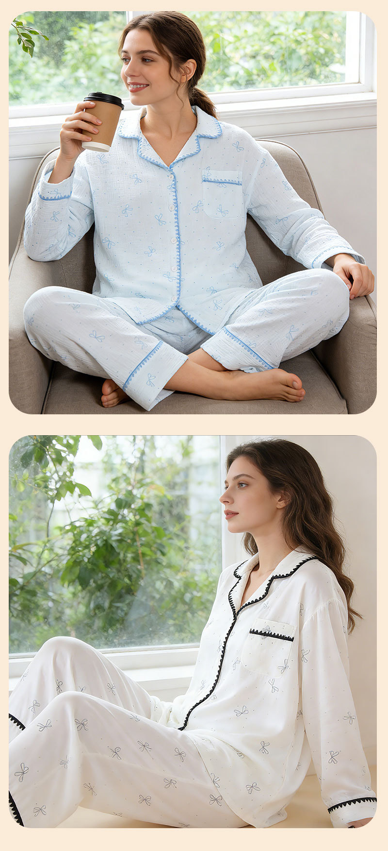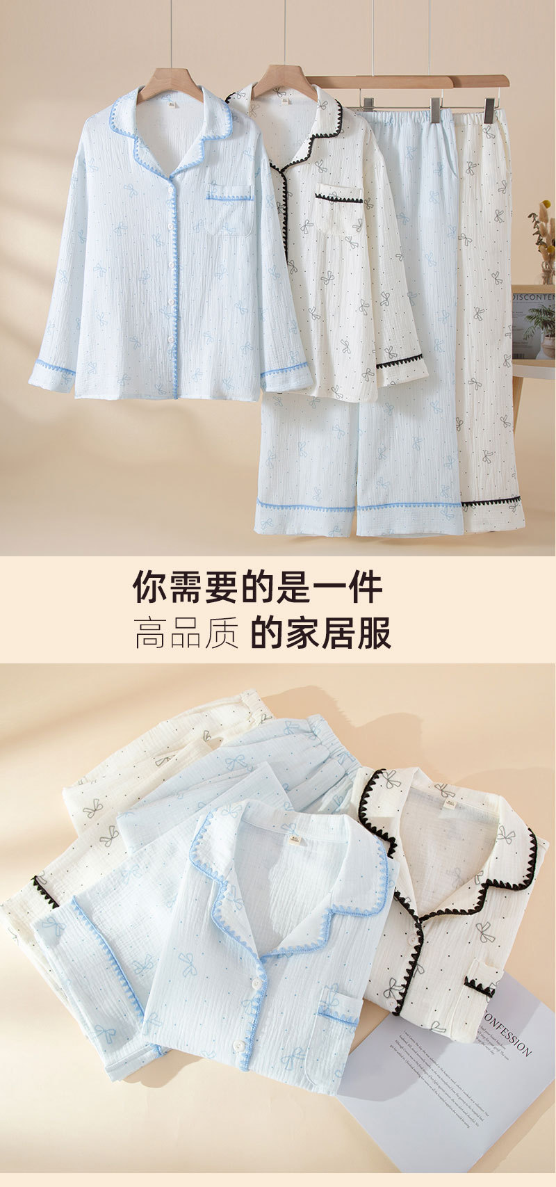 (总)洛兰沙家居馆 26春季新款 小熊纯棉绉布爱心睡衣可爱卡通长袖可外穿家居服套装