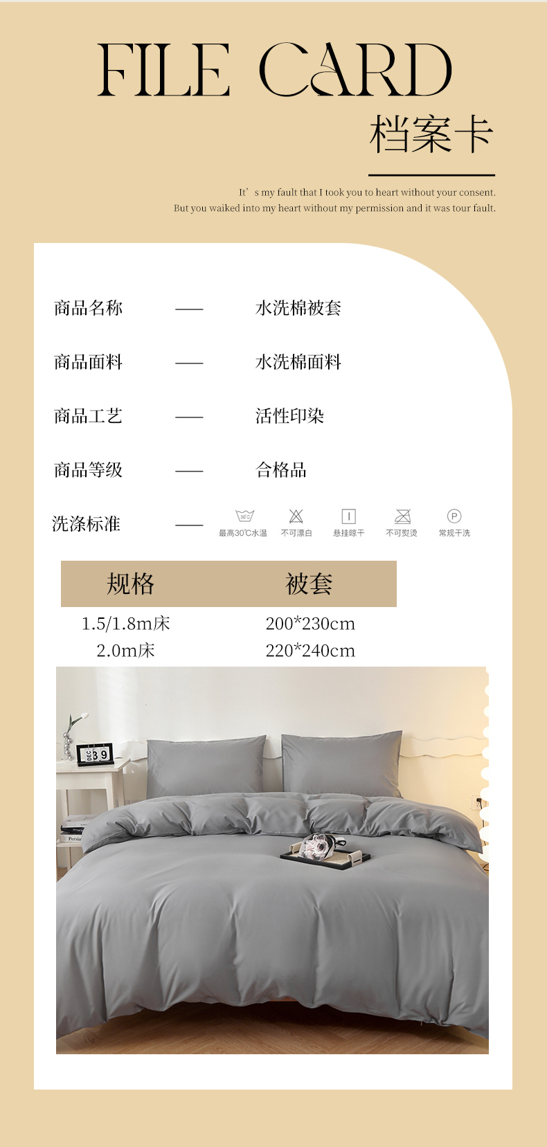(总)宇淳国际 2026新款纯色水洗棉单被套被套单件,白色,草绿,卡其,奶黄,浅粉,浅灰,深豆沙,深灰,深蓝,水绿,天蓝,玉色