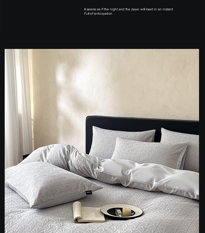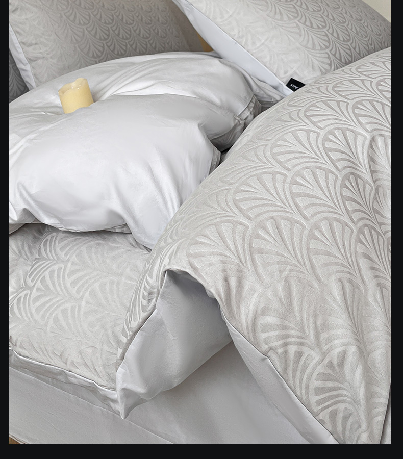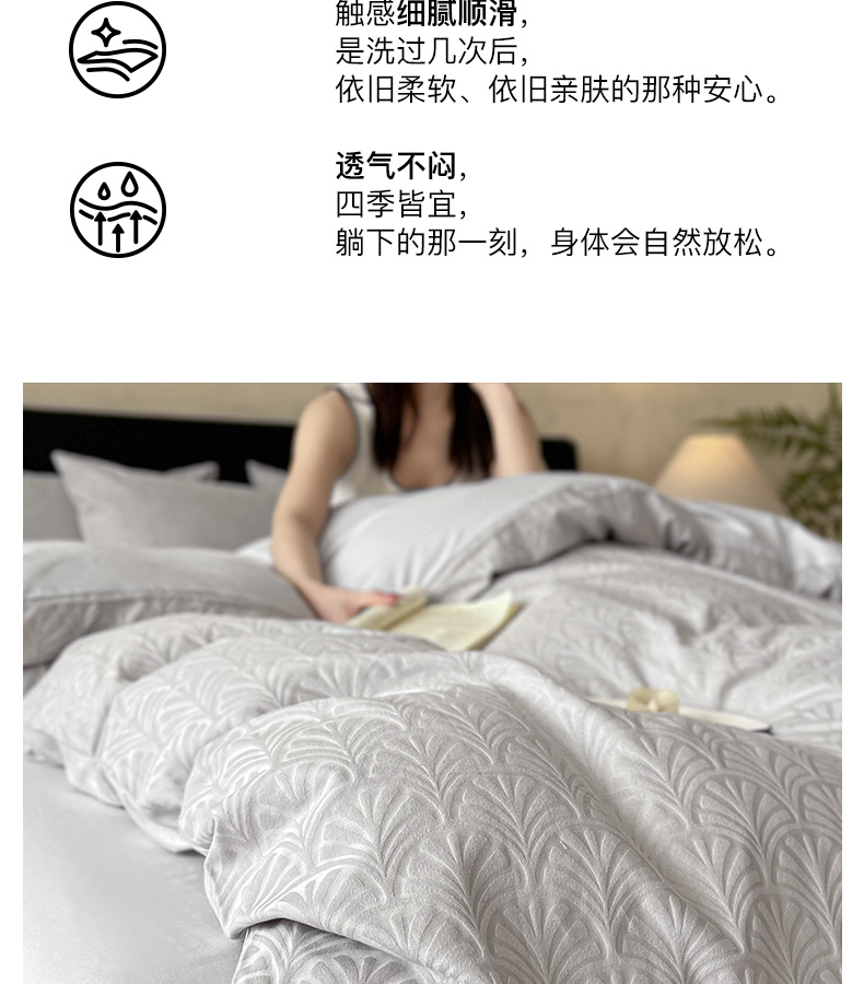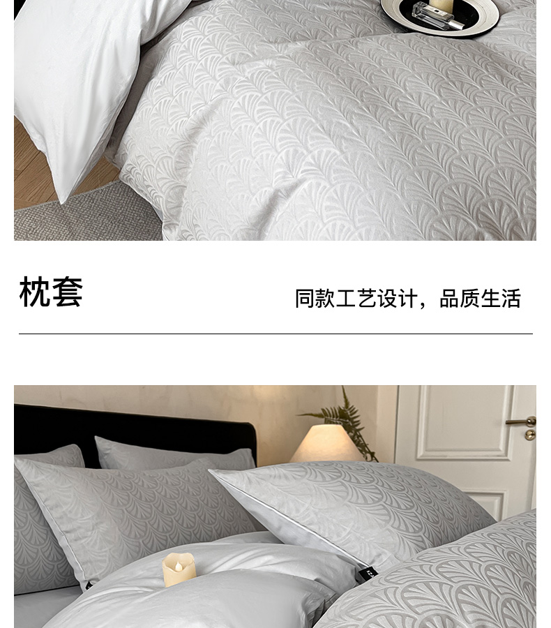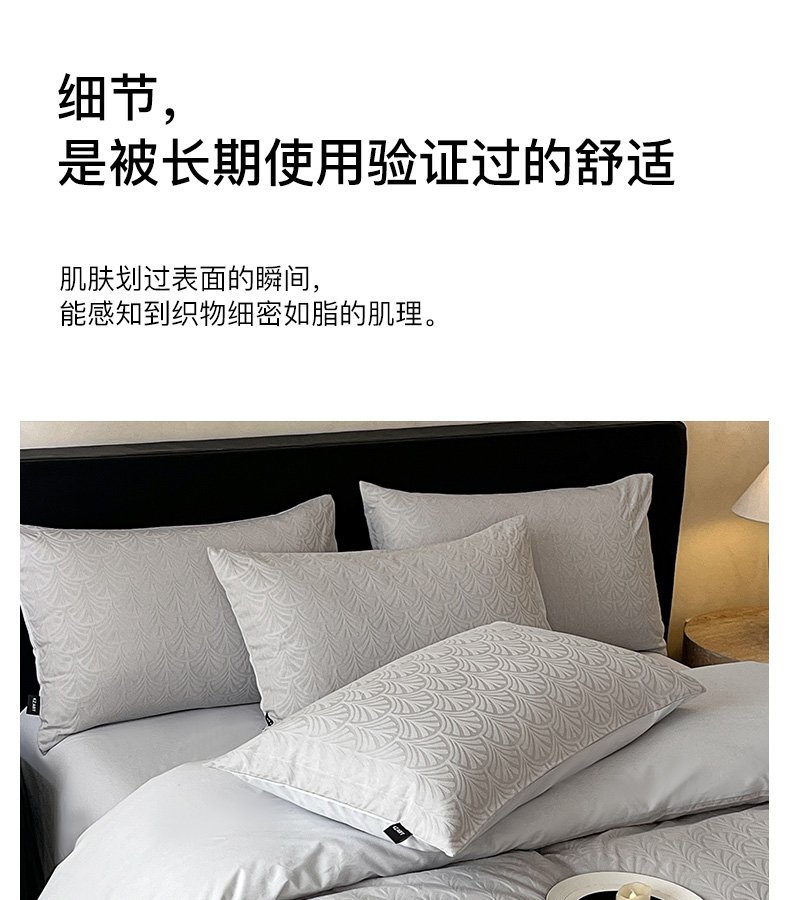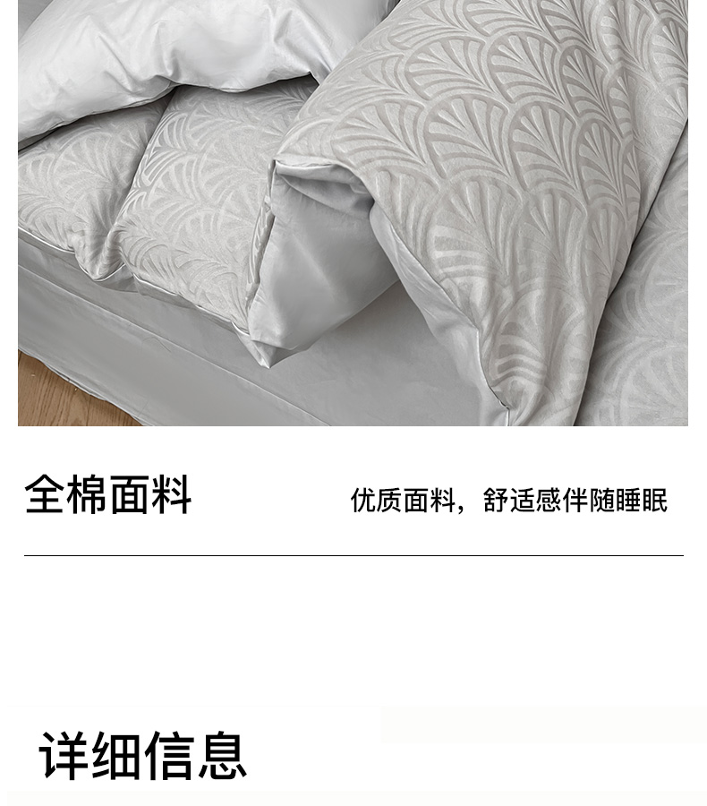 商品名称:卡姿家纺 2026春夏全棉高密厚织大提花轻奢四件套 伊贝卡-银灰