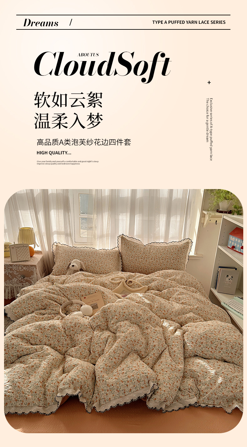 当前位置: 91家纺网 > 商品网购 > 床品套件 > 四件套 > 其它四件套 > 凯洛奇 2026新款高品质A类泡芙纱甜栗花边套件系列一小红书推荐 蜜果小筑
