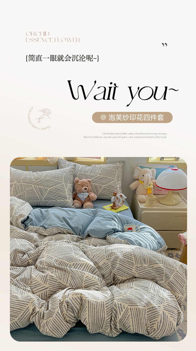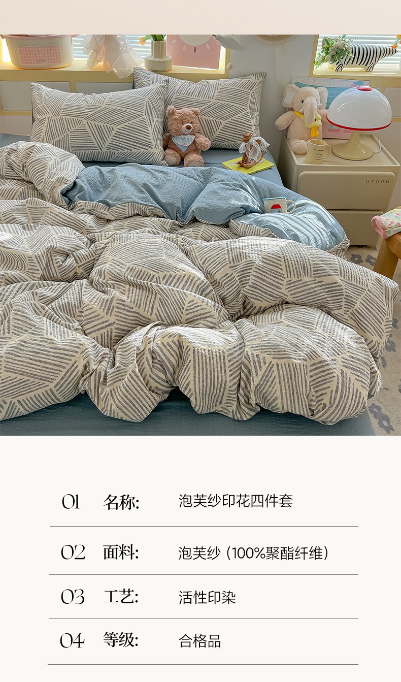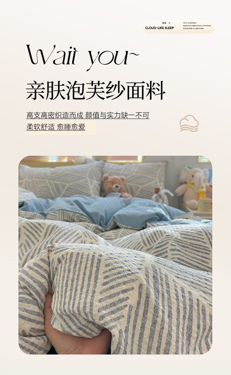 当前位置: 91家纺网 > 商品网购 > 床品套件 > 四件套 > 其它四件套 > 韩巢家纺 2026新款泡芙纱四件套 浅川纹