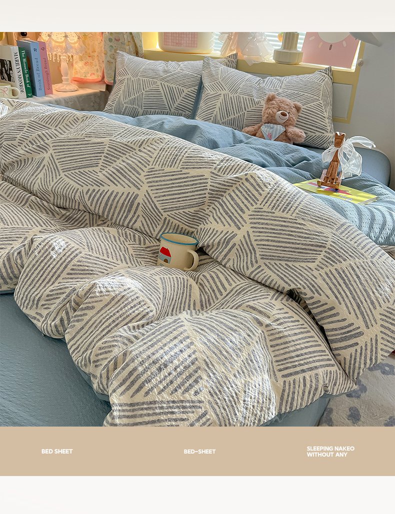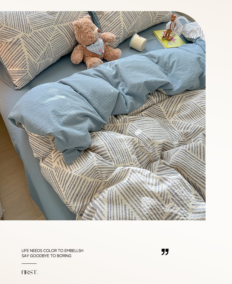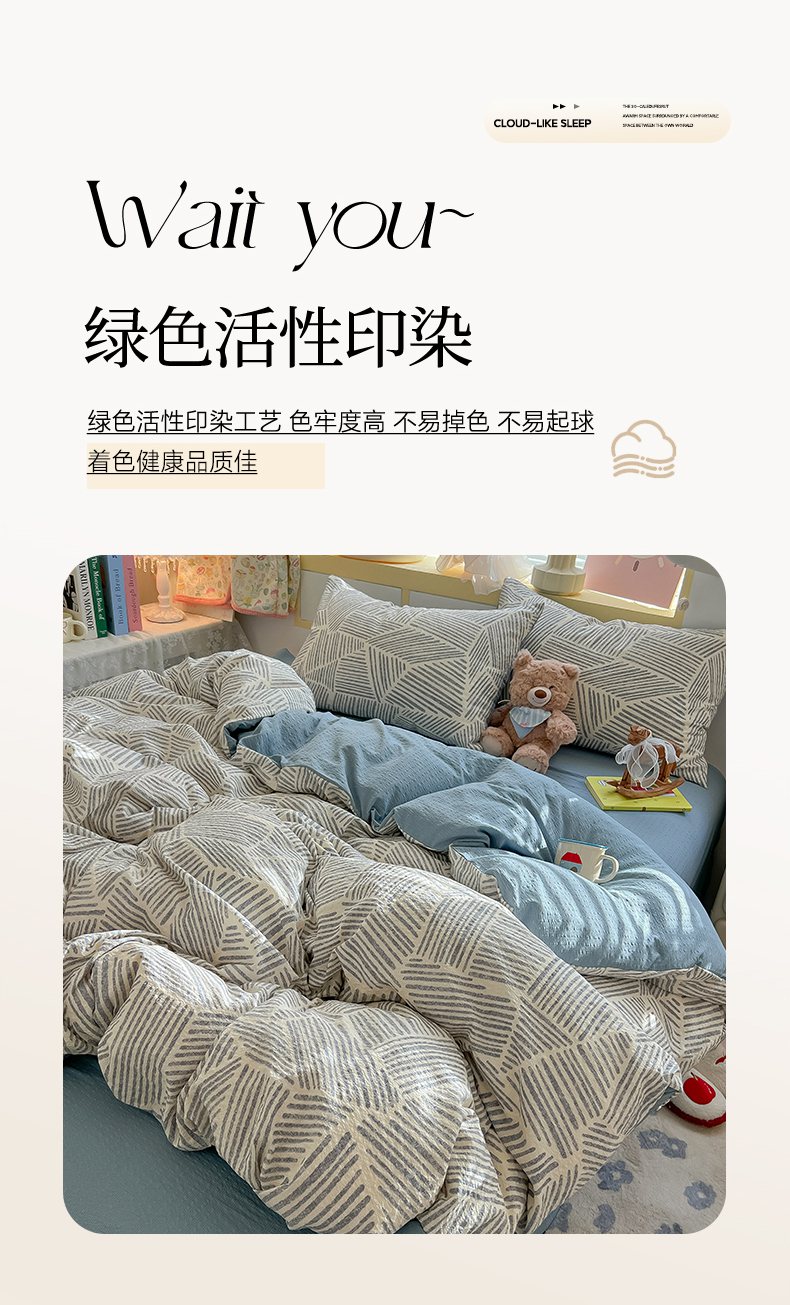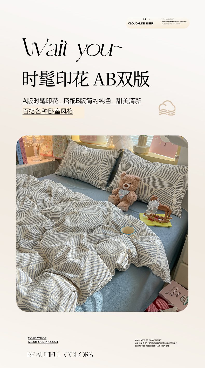 当前位置: 91家纺网 > 商品网购 > 床品套件 > 四件套 > 其它四件套 > 韩巢家纺 2026新款泡芙纱四件套 浅川纹