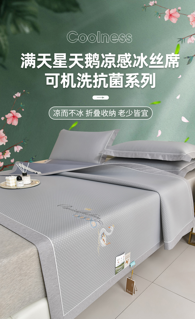 当前位置: 91家纺网 > 商品网购 > 床上用品 > 凉席 > 冰丝席 > 小牛席业 2026新款加厚款-满天星天鹅刺绣凉感冰丝席系列凉席藤席冰藤席冰丝席竹席草席空调席乳胶席豆豆席 满天星天鹅凉感冰丝席-灰色