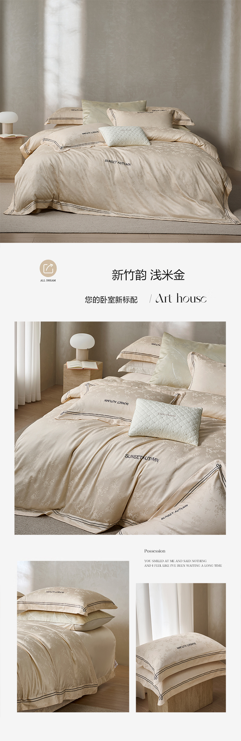 (总)诗黛尔 2026春夏新款长绒棉刺绣四件套黎境系列,黎境-香槟金,黎境-极光蓝,黎境-卡其色,黎境-落樱粉,黎境-绅士灰
