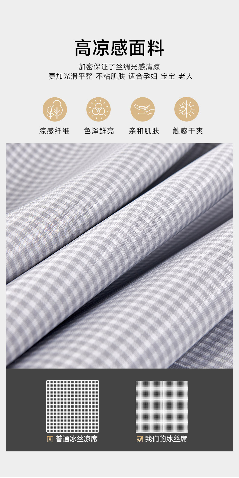 (总)小牛席业 2026新款半定位大提花凉感冰丝席(床笠款)凉席竹席藤席冰藤席乳胶席豆豆席,灰色,粉色,蓝色,香槟