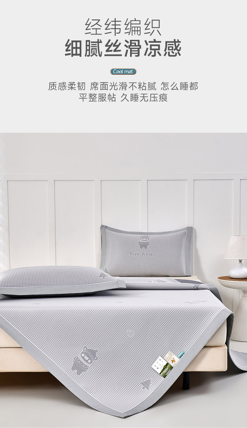 小牛席业 2026新款【实拍风格】双PE高凉感-韩版小熊提花冰丝席凉席竹席藤席冰藤席乳胶席豆豆席 香槟