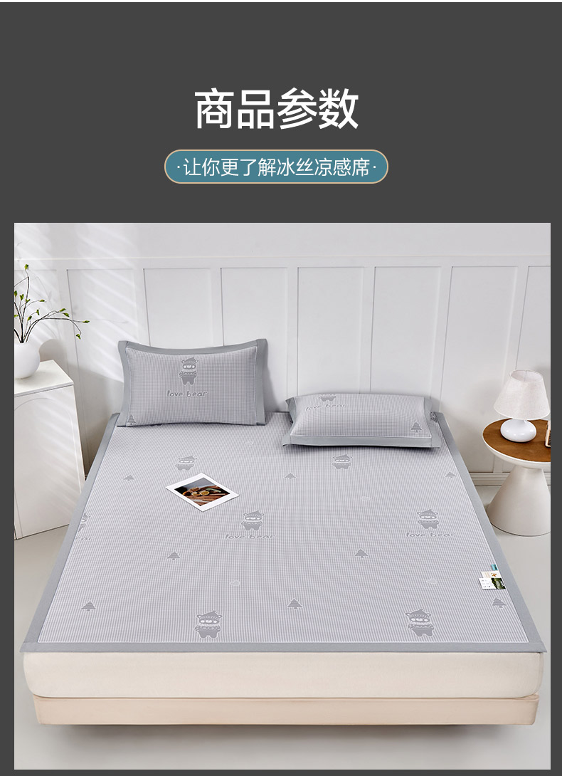 商品名称:小牛席业 2026新款【实拍风格】双PE高凉感-韩版小熊提花冰丝席凉席竹席藤席冰藤席乳胶席豆豆席 香槟