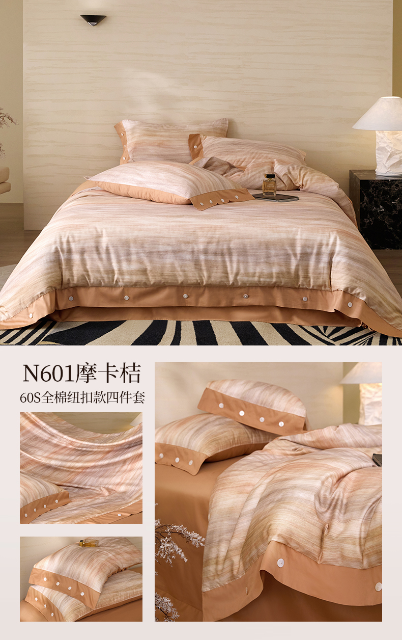 当前位置: 91家纺网 > 商品网购 > 床品套件 > 四件套 > 长绒棉四件套 > 梧桐树 2026新款60支长绒棉纯棉宽边纽扣系列四件套 N609山有色咖