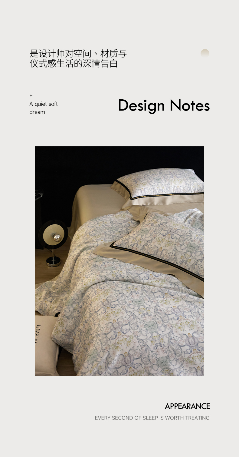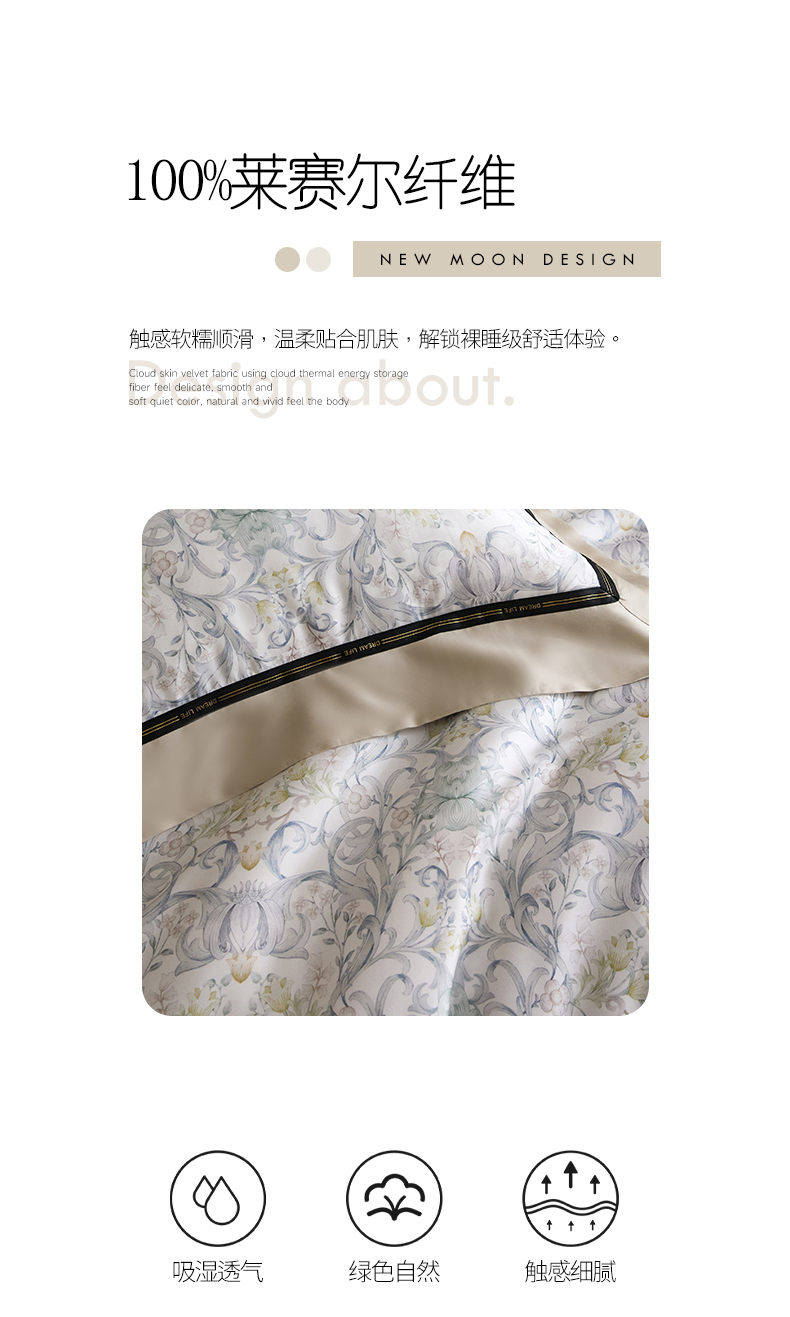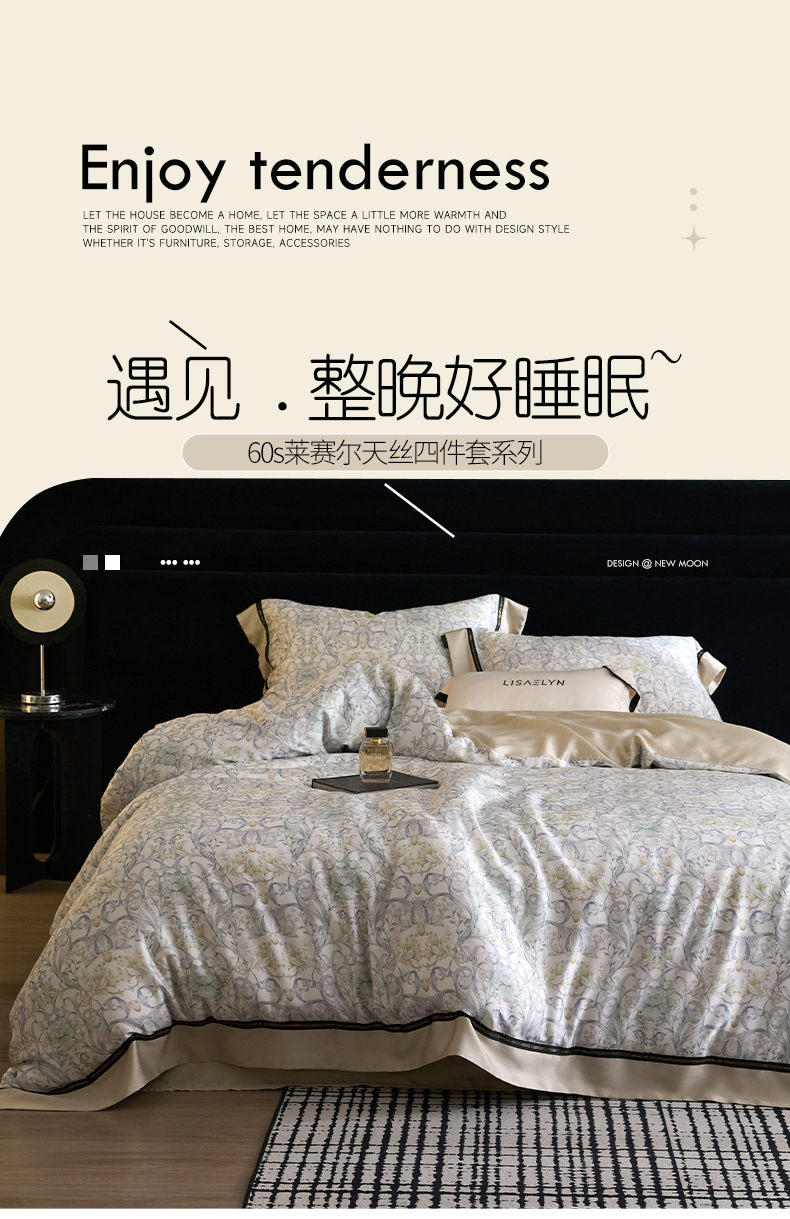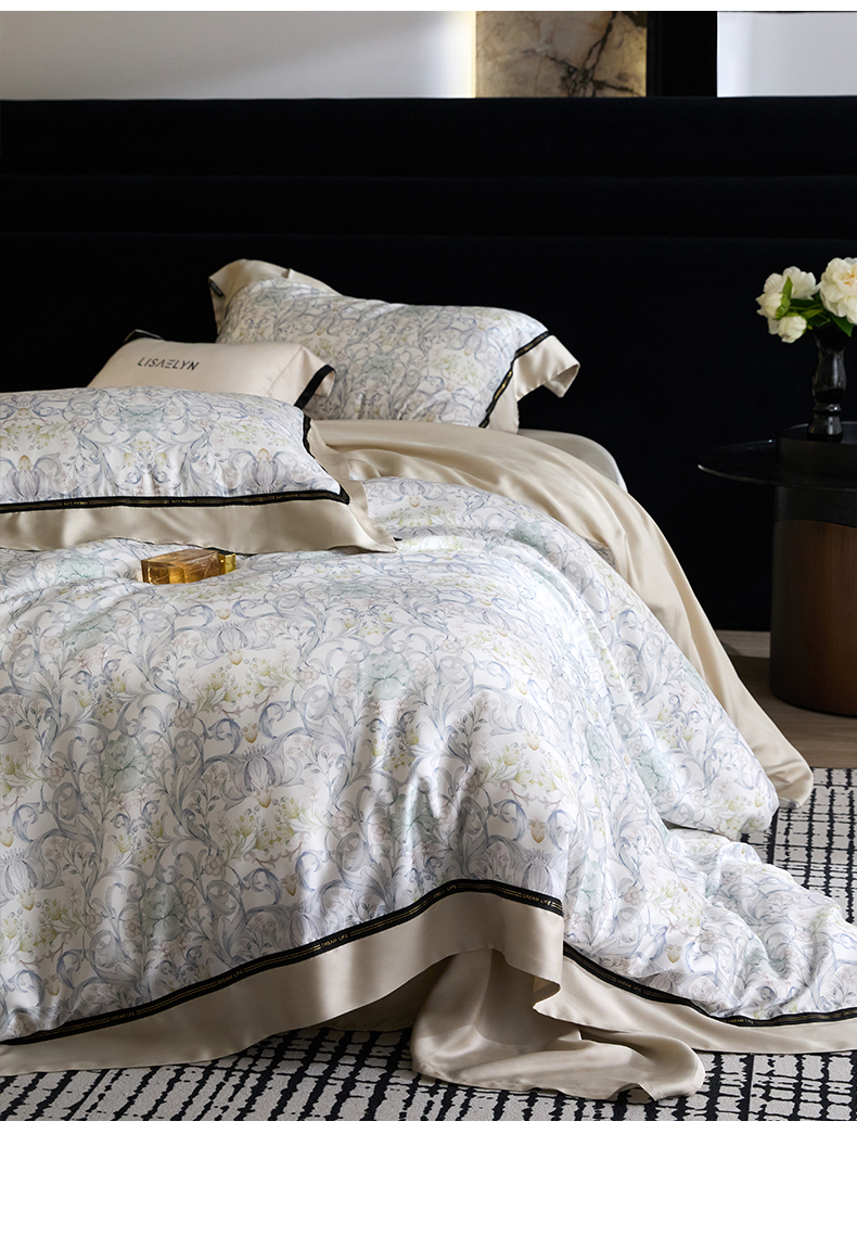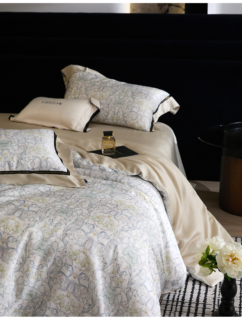 当前位置: 91家纺网 > 商品网购 > 床品套件 > 四件套 > 莱赛尔四件套 > 慕梵家居 2026新款60支100%莱赛尔天丝四件套 山月玲
