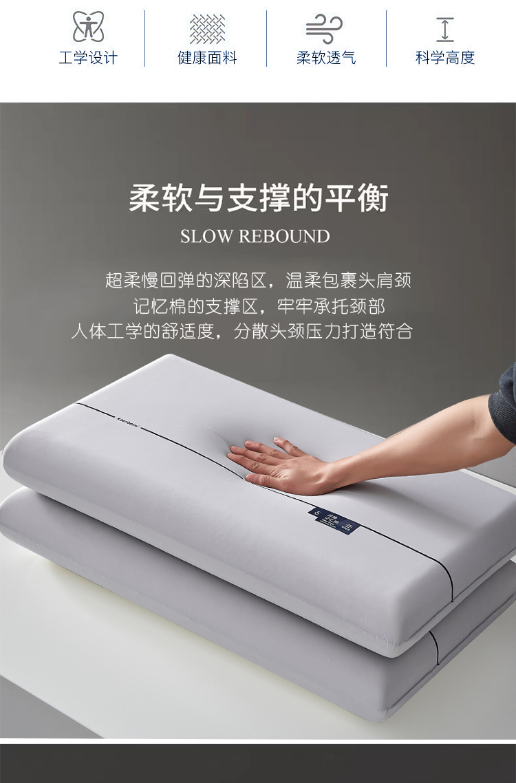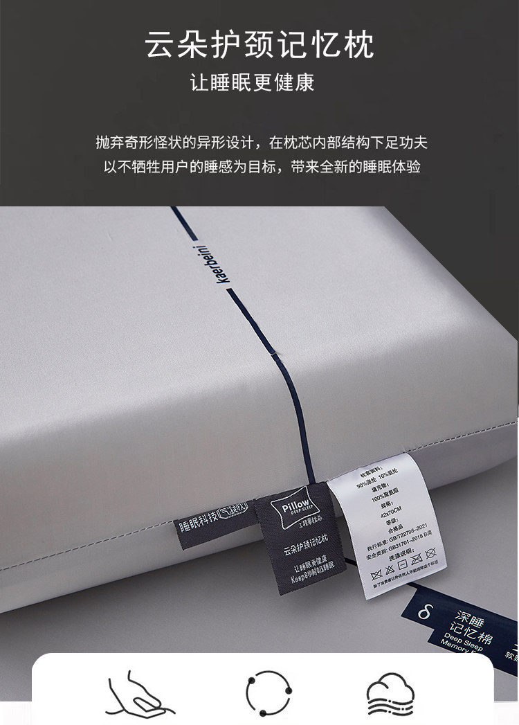 当前位置: 91家纺网 > 商品网购 > 枕头/枕芯/保健枕/颈椎枕 > 枕头枕芯 > 云梦枕居 2026新款零压助眠深睡慢回弹记忆枕头枕芯 酒店面包枕云朵枕 灰色