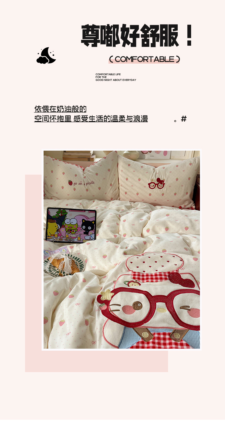当前位置: 91家纺网 > 商品网购 > 床品套件 > 四件套 > 其它四件套 > 贝扬思家纺 2026春夏新款云朵贴布绣绣花四件套 猫猫小家