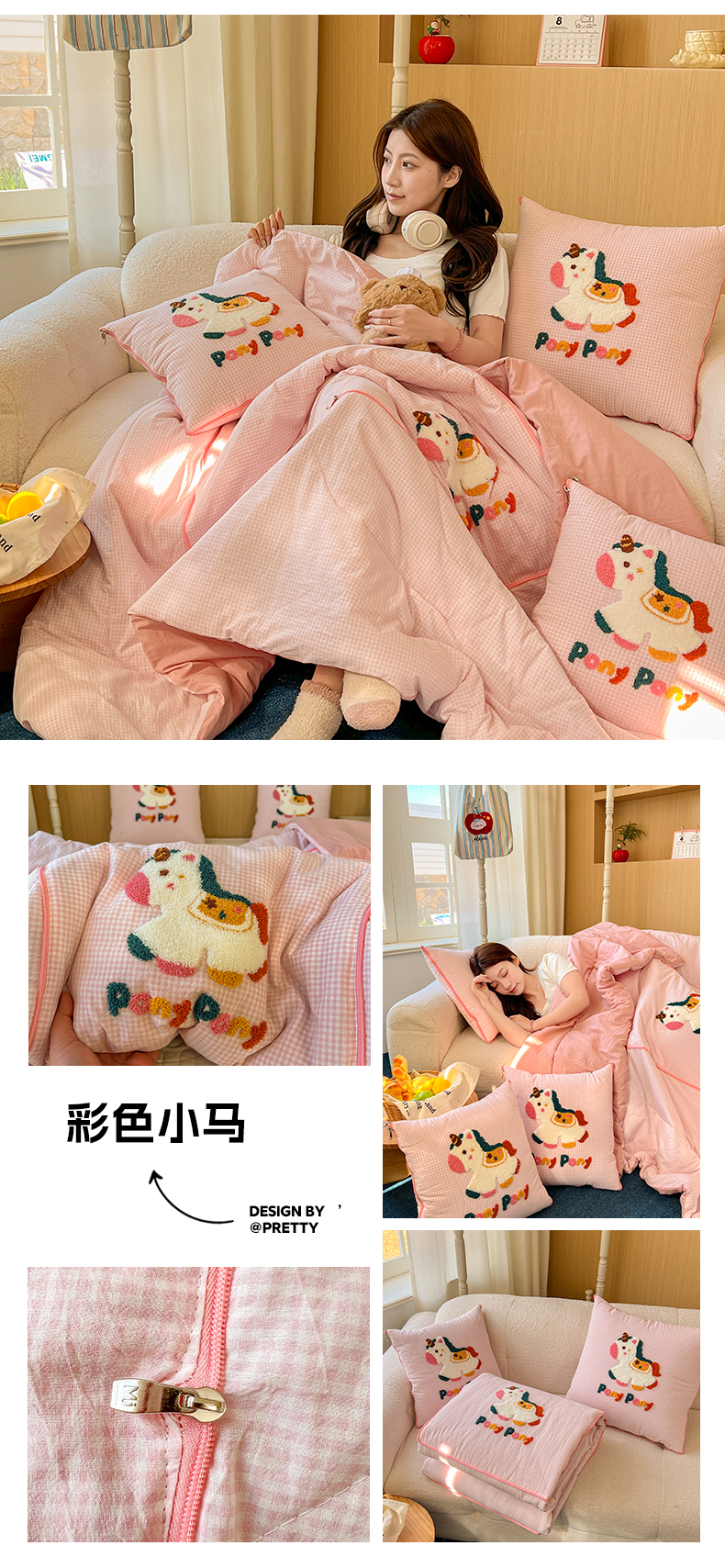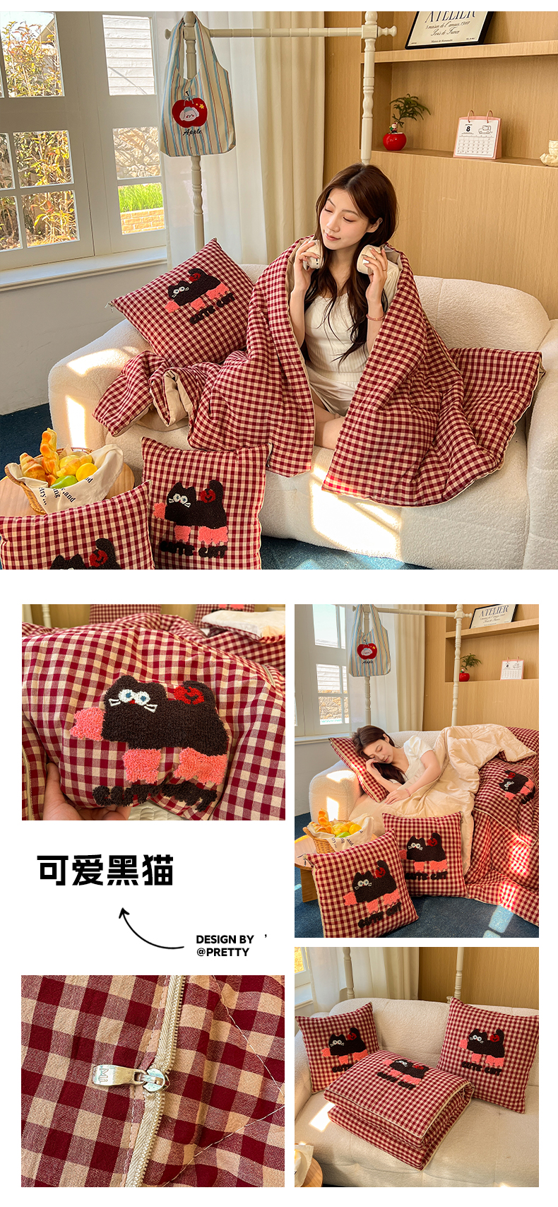(总)番茄+ 2026春夏新款色织全棉纯棉水洗棉毛巾绣抱枕被,可爱黑猫,彩色小马,波点腊肠狗,苹果企鹅-黑格,苹果企鹅-咖格,组合图仅供展示不可下单